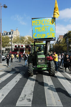 La Confédération paysanne, syndicat qui défend une agriculture raisonnée, écologique et familiale, ne peut que s'opposer au traité du Mercosur. Le type d'agriculture pratiqué dans ces pays est à l'opposé de ce modèle de développement, avec l'utilisation de pesticides déjà interdits en Europe et des exploitations de taille sans commune mesure avec les nôtres. D'où ce slogan : "Mercosur, mort à coup sûr" des exploitations agricoles familiales.