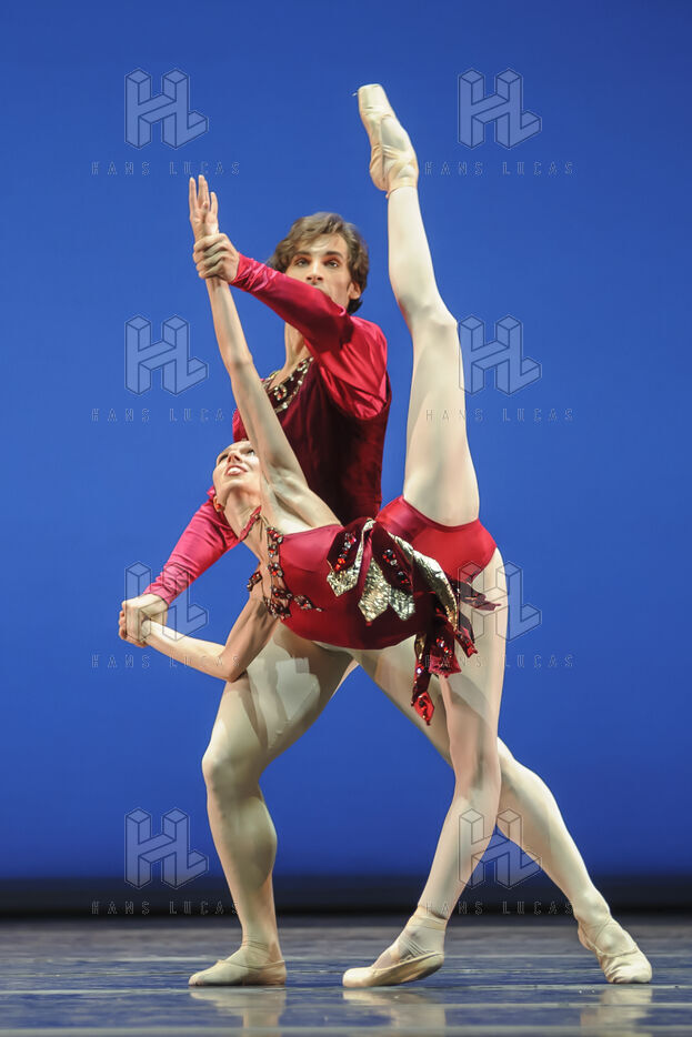 Nina Polakova and Mihail Sosnovschi from the Wiener Staatsballet led by Manuel Legris (Paris Opera Ballet Etoile) performing RUBIES, the 2nd part of JEWELS by George Balanchine at Theatre du Chatelet during the dance festival Les Etes de la Danse in 2013.