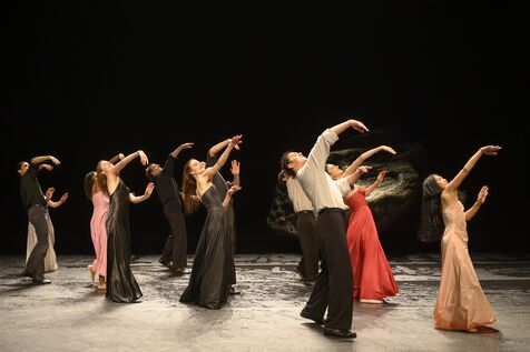 VOLLMOND, staging and choreography by Pina Bausch. Scenography by Peter Pabst. Costumes by Marion Cito. Music collaboration : Matthias Burkert, Andreas Eisenschneider. Collaboration : Marion Cito, Daphnis Kokkinos, Robert Sturm. Music by Amon Tobin, Alexander Balanescu with the Balanescu Quartett, Cat Power, Carl Craig, Jun Miyake, Leftfield, Magyar Posse, Nenad Jeliìc, René Aubry, Tom Waits. Co-artistic direction : Tanztheater Wuppertal Pina Bausch and Terrain Boris Charmatz. Rehearsals masters : Daphnis Kokkinos, Robert Sturm. Dancers from Tanztheater Wuppertal : Edd Arnold, Dean Biosca, Emily Castelli, Maria Giovanna Delle Donne, Taylor Drury, Samuel Famechon, Ditta Miranda Jasjfi, Reginald Lefebvre, Alexander Lopez Guerra, Nicholas Losada, Blanca Noguerol Ramirez, Azusa Seyama, Julie Anne Stanzak, Christopher Tandy.