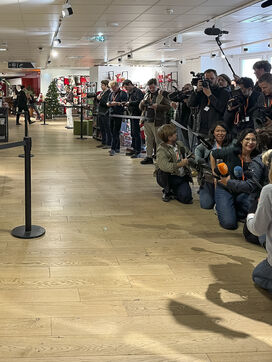 The owner of BHV Marais, Frederic Merlin, and his CEO, Karl Stephane Cottendin, graciously answered questions from the press before cutting the ribbon and letting customers in. It must be acknowledged that the two managers had taken particular care with their presentation, placing a bouquet of fresh flowers on each table displaying their products and opening their sales area like an exhibition, with articulated mannequins welcoming customers in dynamic and cheerful poses.