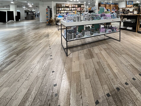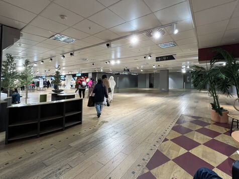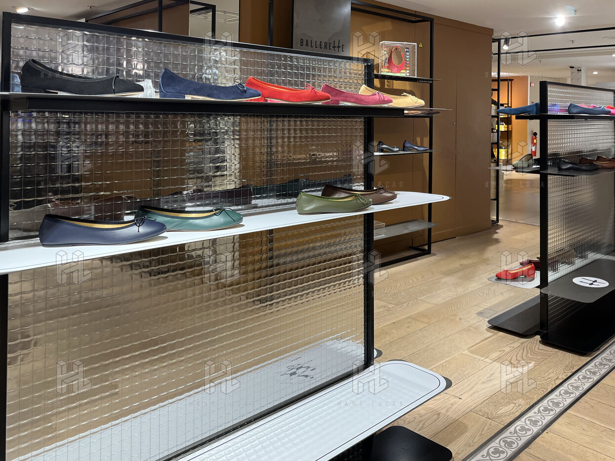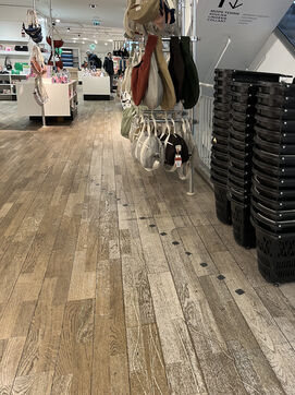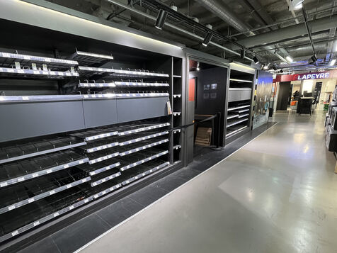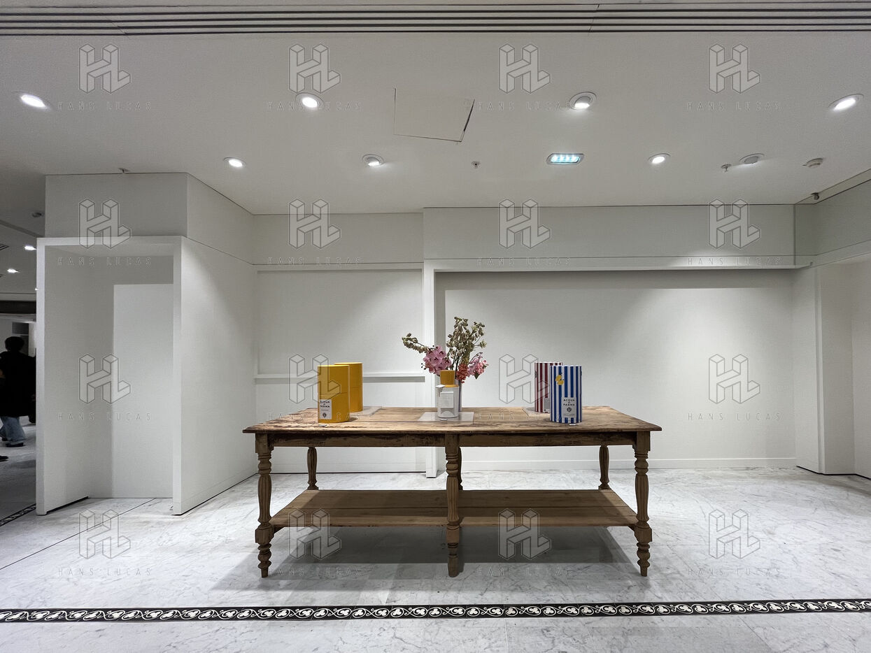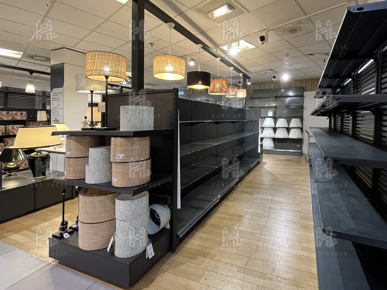 The store's layout has been rearranged with screens hiding the empty spaces but you still can see marks on the floor where the display furniture has been removed or replaced with lighter displays. Some areas are deserted, giving the impression of being in the back of the shop or in a warehouse. To fill the void, the shop has added several ‘relaxation corners’ with two armchairs and a coffee table, intended to offer a little rest in the middle of an exhausting day of shopping.