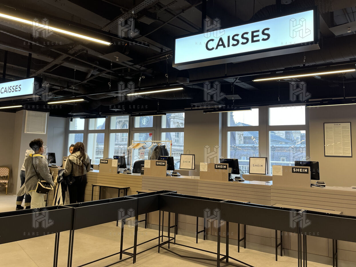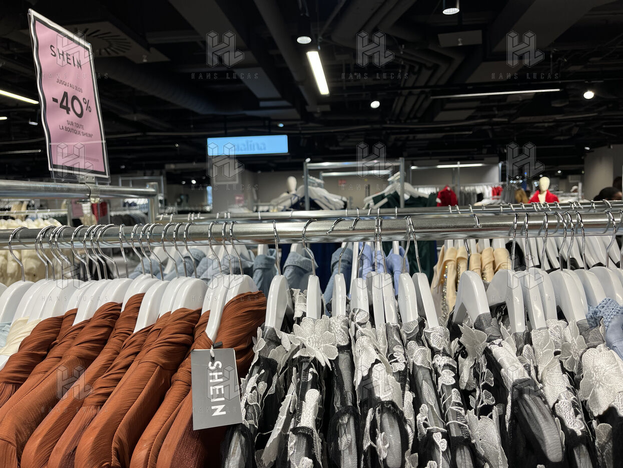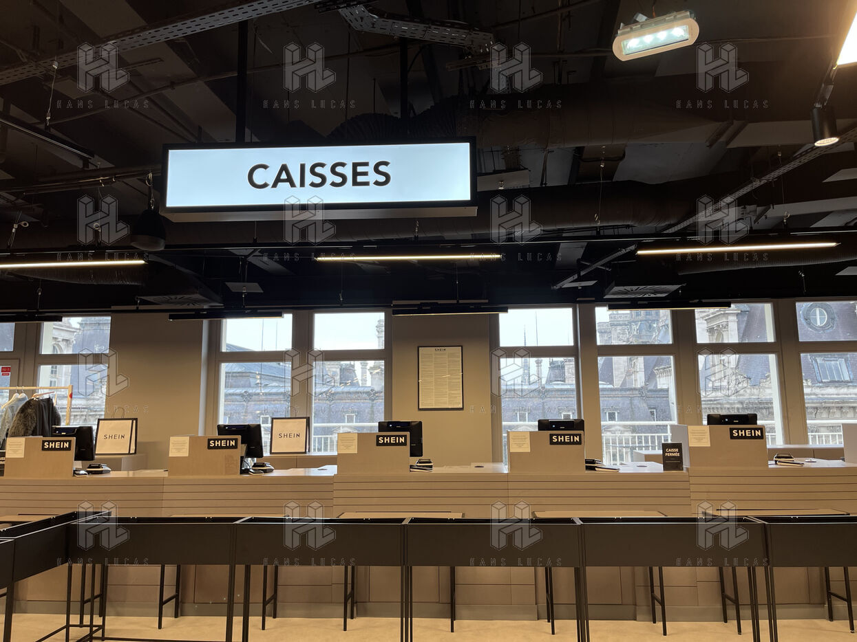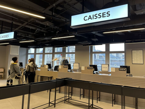 On the sixth floor, the SHEIN floor, the situation is the same. When you step out of the lift, you are struck by the huge empty space you need to cross before reaching the sales area. Here too, there is less merchandise, so it is spread out. The brand is offering a 40% discount during 1 month. However, the 10 checkouts dedicated to the Chinese store are tragically deserted. Only one checkout is open.