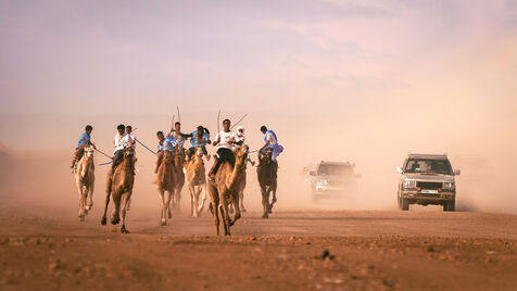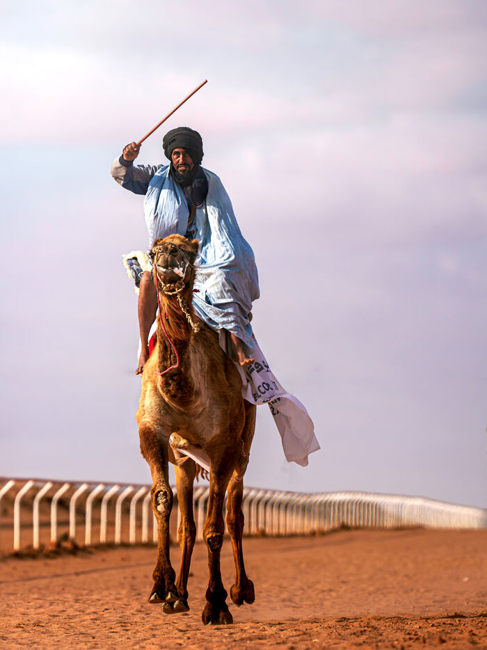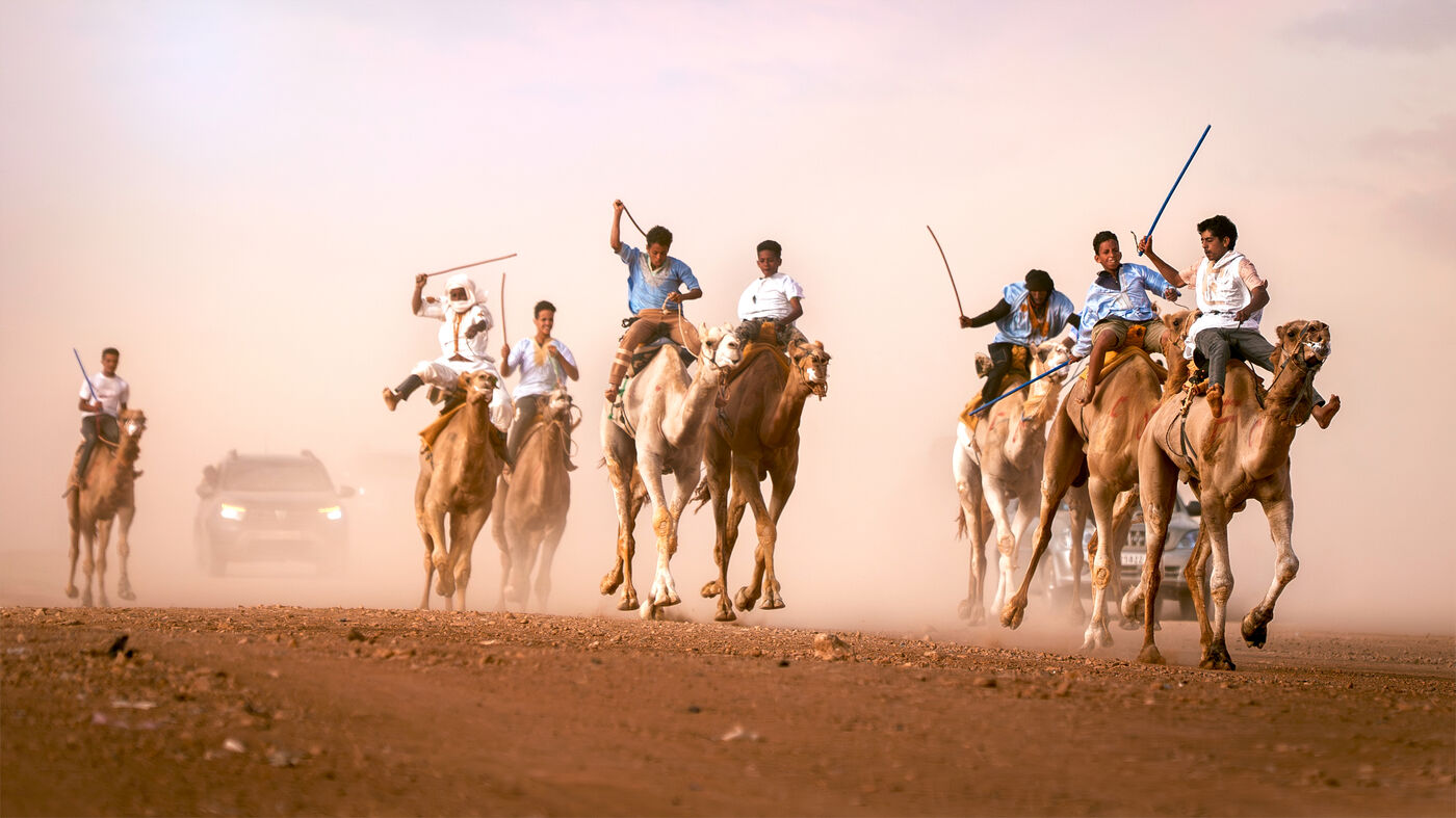 Camel racing, a social practice and festive heritage, is a popular tradition in Saharan communities. Preparing a racing camel involves several steps. Animals are selected based on their type, origin, and age, and are fed a specific diet. They train in groups on the racecourse and are trained to participate in competitions. The races take place on camel tracks under the supervision of specialized committees. There are usually between fifteen and twenty camels competing in each race, and the distance to be covered is determined according to the age of the animals. Knowledge and skills are passed on through the joint efforts of community representatives, government agencies, specialized centers, the racing federation, and clubs. Children and young people gradually acquire the knowledge and skills associated with this practice through observation, simulation, and oral expression. Camel racing is a fundamental aspect of the nomadic way of life, but also a source of inspiration and creativity in poetry and song. Its importance and longevity within Bedouin society are linked to the predominant role of camels in desert areas.