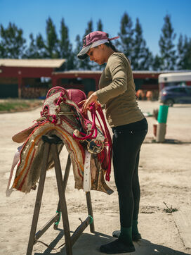 The roots of Tbourida are deeply embedded in Morocco's military history, dating back to a time when the Moroccan cavalry used this technique to surprise the enemy on the battlefield. However, over the centuries, Tbourida has evolved into a spectacle organized during moussems and equestrian festivals. This evolution has, in part, changed the dynamics of this ancestral art, but one element has remained constant: the role of women. For a long time, women were relegated to the shadows of this tradition. Recently, however, they have begun to take their place in the world of Tbourida. Beyond skilled riders and spectacular shooting demonstrations, women are asserting themselves. Amal Hamrami is the captain of one of the very few women's teams.