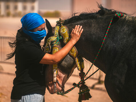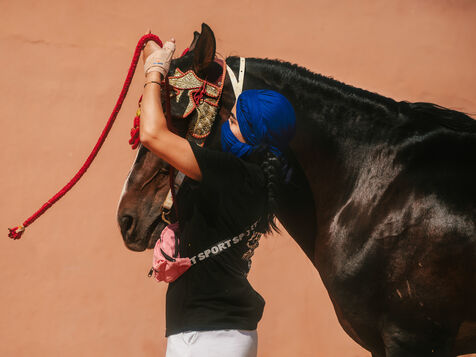 Les racines de la Tbourida plongent profondément dans l’histoire guerrière du Maroc, à une époque où la cavalerie marocaine exploitait cette technique de guerre pour surprendre l’ennemi sur le champ de bataille. Néanmoins, au fil des siècles, la Tbourida a évolué, se transformant en un spectacle organisé lors de moussems et de festivals équestres. Cette évolution a, en partie, changé la dynamique de cet art ancestral, mais un élément est resté constant : le rôle des femmes. Pendant longtemps, les femmes ont été reléguées dans l’ombre de cette tradition. Cependant, récemment, elles ont commencé à prendre leur place dans le monde de la Tbourida. Au-delà des cavaliers habiles et des spectaculaires démonstrations de tir, les femmes sont en train de s’affirmer. Amal Hamrami est la capitaine d'une des tres rares équipes feminine.