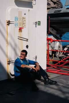 It is time to go home. This fifth and final series aboard the Astrolabe finally reveals a little more of the faces of these sailors, so little exposed during the previous series. A feeling, at the very end of the voyage, of crossing an invisible line into their intimacy that seems so difficult to access.