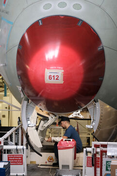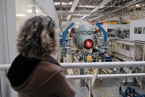 France, Colomiers, 2022-12-08. Visit of the final assembly line (FALs) of the Airbus A350 aircraft, on its historical site in the suburbs of Toulouse.