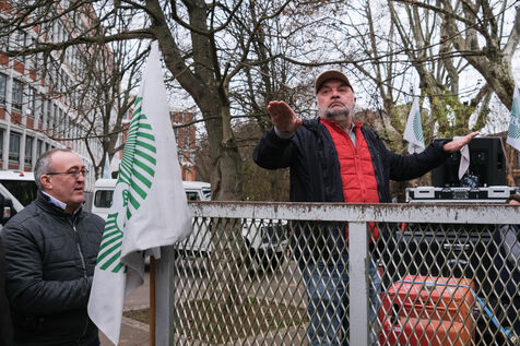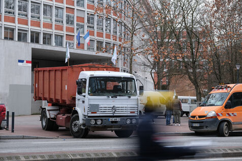 France, Toulouse, 2023-01-06. Union action by the FDSEA in front of the DRAAF (Direction Regionale de l Alimentation, de l Agriculture et de la Foret). Dissatisfied with the zoning of the Intermediate Zone (agricultural areas classified as less-favoured, giving the right to European aid), the farmers of the region consider that it excludes many cereal-growing areas in Occitania, which would go against ministerial commitments. After a meeting with the DRAAF, they obtained satisfaction for their demands.
