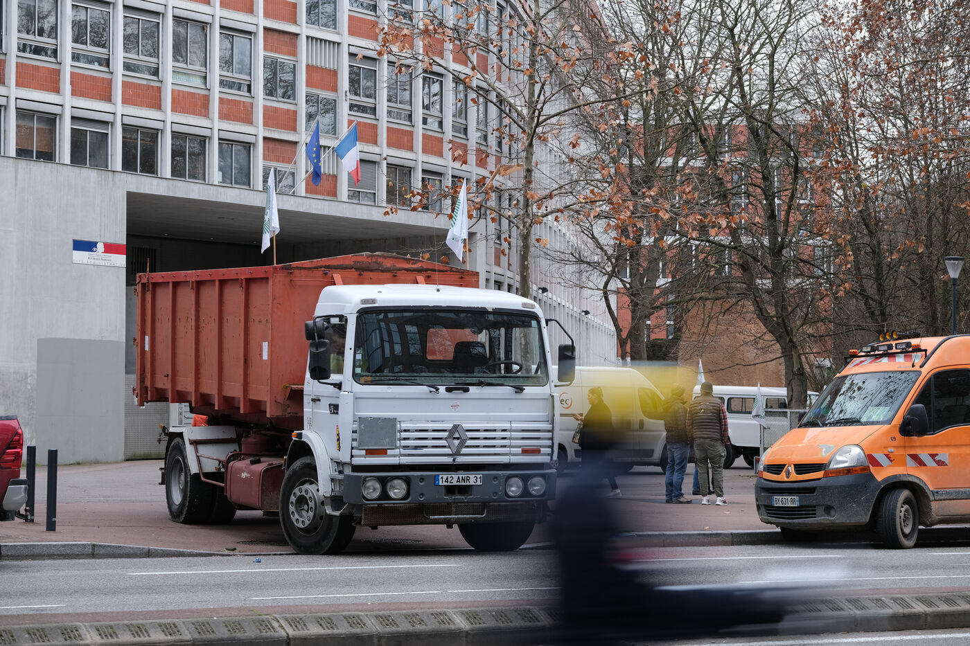 France, Toulouse, 2023-01-06. Action syndicale de la FNSEA devant la DRAAF (Direction Régionale de l?Alimentation, de l?Agriculture et de la Forêt). Mécontents du zonage de la Zone Intermédiaire (zones agricoles classées comme défavorisées, ouvrant droit à des aides européennes), les agriculteurs de la région considère que celui-ci exclue de nombreuses zones céréalières en Occitanie, ce qui irait à l'encontre des engagements ministériels. Apres un entretien avec la DRAAF, ils ont obtenus satisfaction à leurs revendications.