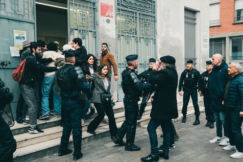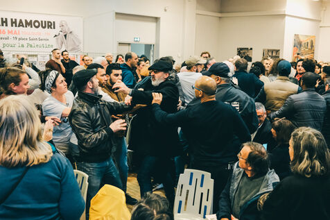Toulouse, France, 2023-05-16. The Franco-Palestinian lawyer Salah Hamouri, expelled last December from Jerusalem for non-allegiance to the state of Israel, and now resident in France, held a conference at the Bourse du Travail, at the invitation of the CGT and pro-Palestinian associations. On the theme of "Freedom for Palestine", the lawyer, who was incarcerated for ten years, spoke at length about the conditions of detention in Israel, but the conference was quickly disrupted by unexpected interventions in the room. The conference was quickly disrupted by unannounced interventions in the hall. Police had to intervene outside to avoid any confrontation between opponents of the conference and supporters of the Palestinian cause.