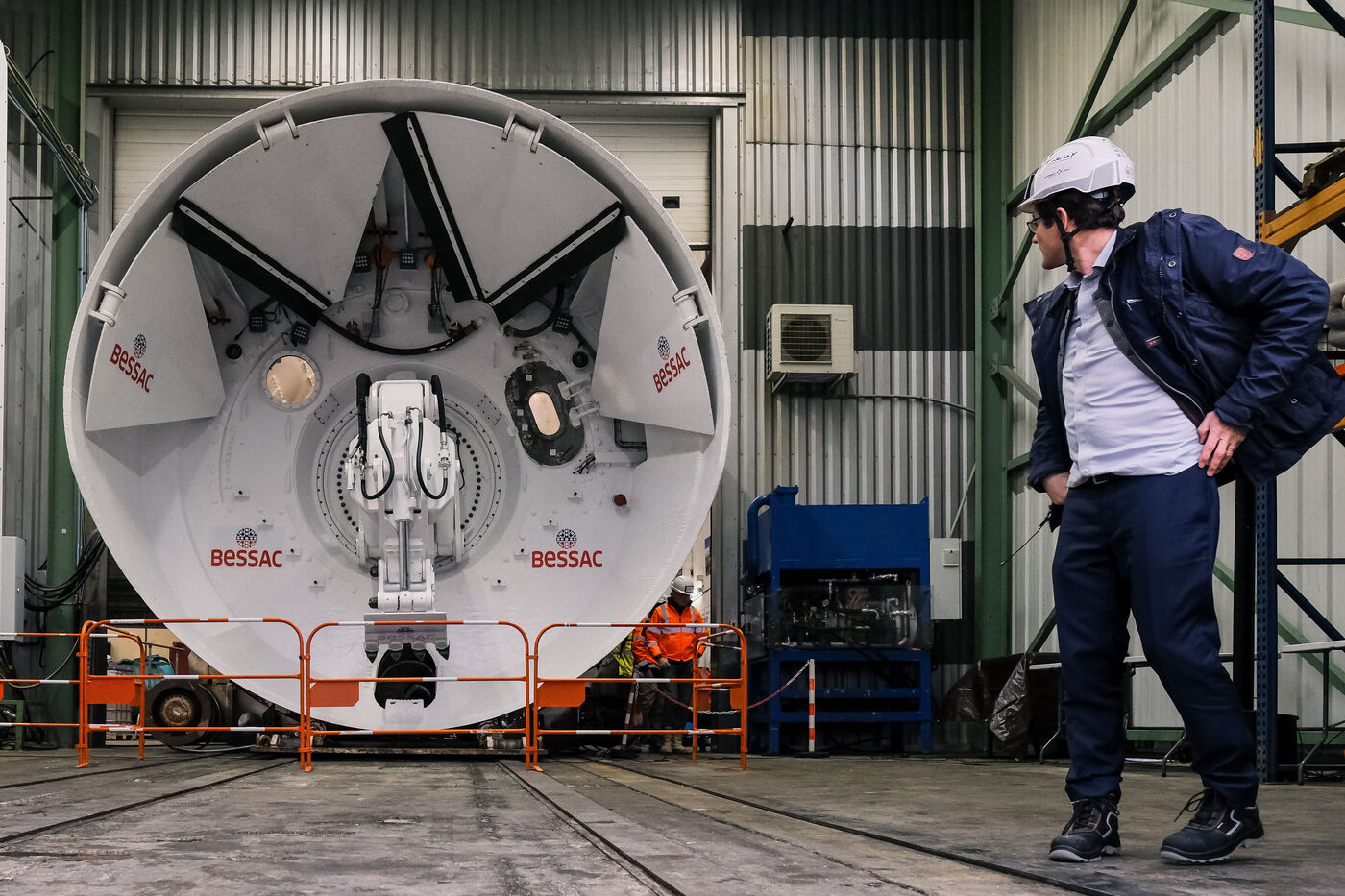 Saint-Jory, France, 2024-01-11. For the extension of the line B of the Toulouse metro, and its junction with line C currently under construction, Tisséo has unveiled the tunnel boring machine that will be responsible for digging under the Canal du Midi. Manufactured by local company Bessac, the containment TBM, which has already been used on other sites, measures over 5m in diameter and is equipped with a pressurised cabin for digging in alluvial soil.