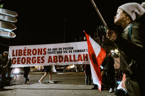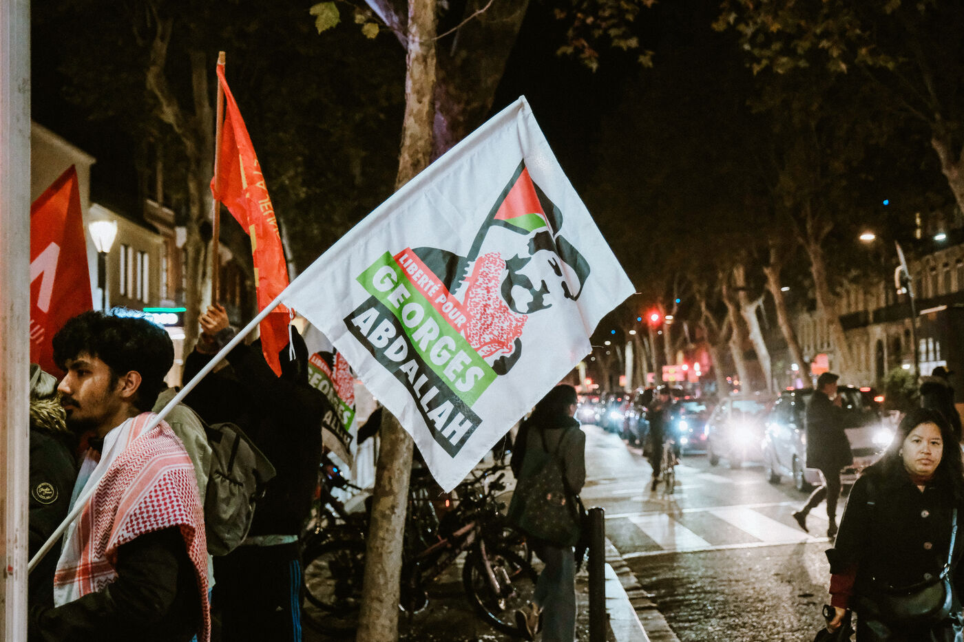 Manifestation pour la libération du libanais pro-palestinien Georges Ibrahim Abdallah à la veille de la décision de la justice sur sa dernière demande de remise en liberté à Toulouse, sud-ouest de la France le 14 novembre 2024.