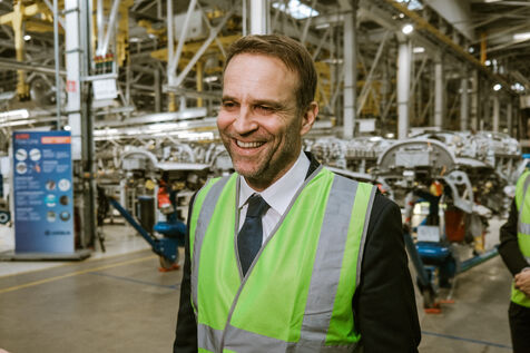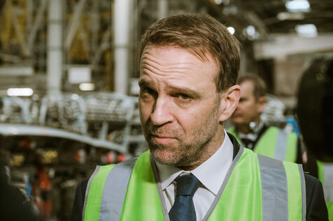 Visite du Lycée professionnel d'Airbus Saint-Eloi et de la ligne de production des mâts pour avions A350 à Toulouse, sud-ouest de la France le 18 novembre 2024.