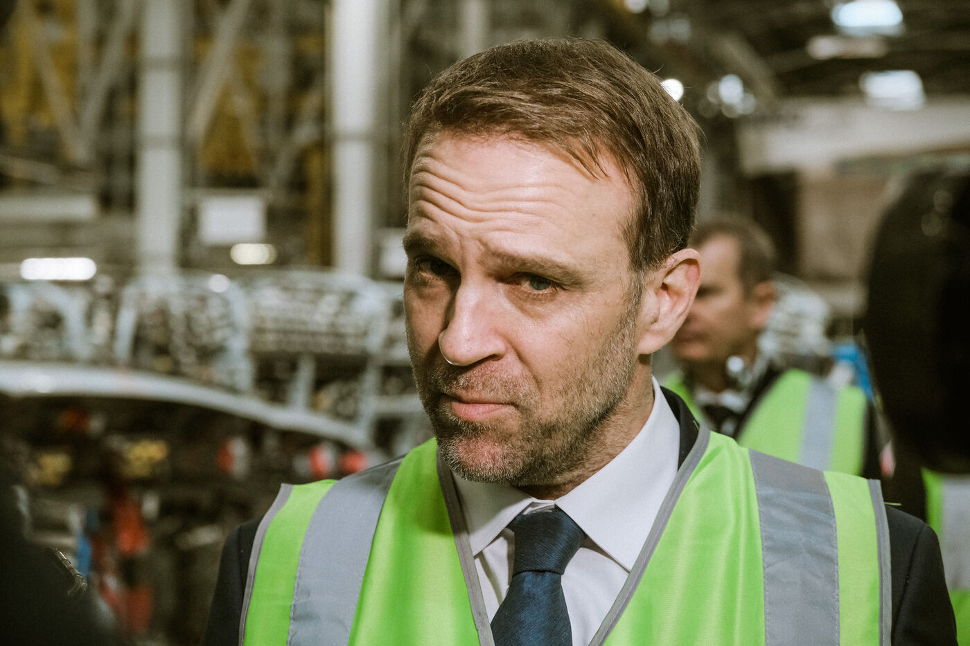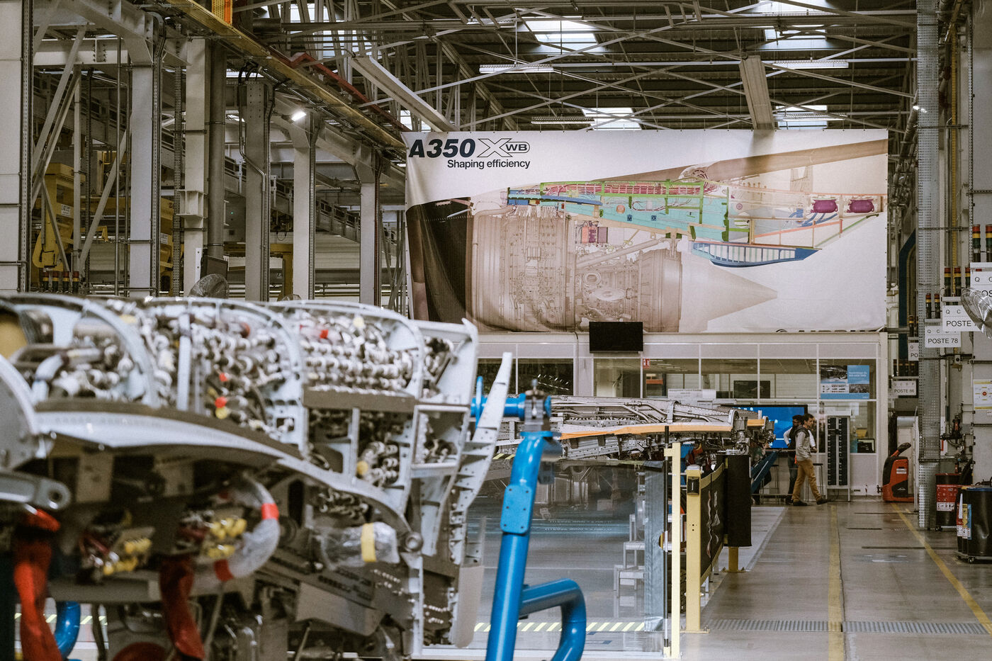 Visit of the Airbus Saint-Eloi vocational school and the production line of masts for A350 aircraft in Toulouse, southwest France on November 18, 2024.