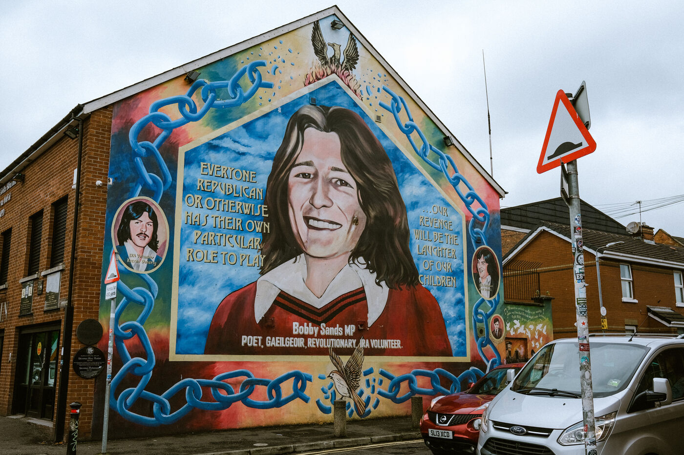 Mural on the historic Peace Wall in Belfast, Northern Ireland, on August 8, 2024.