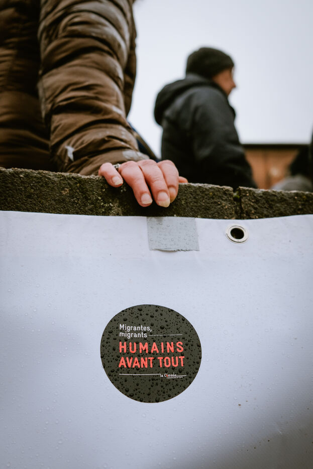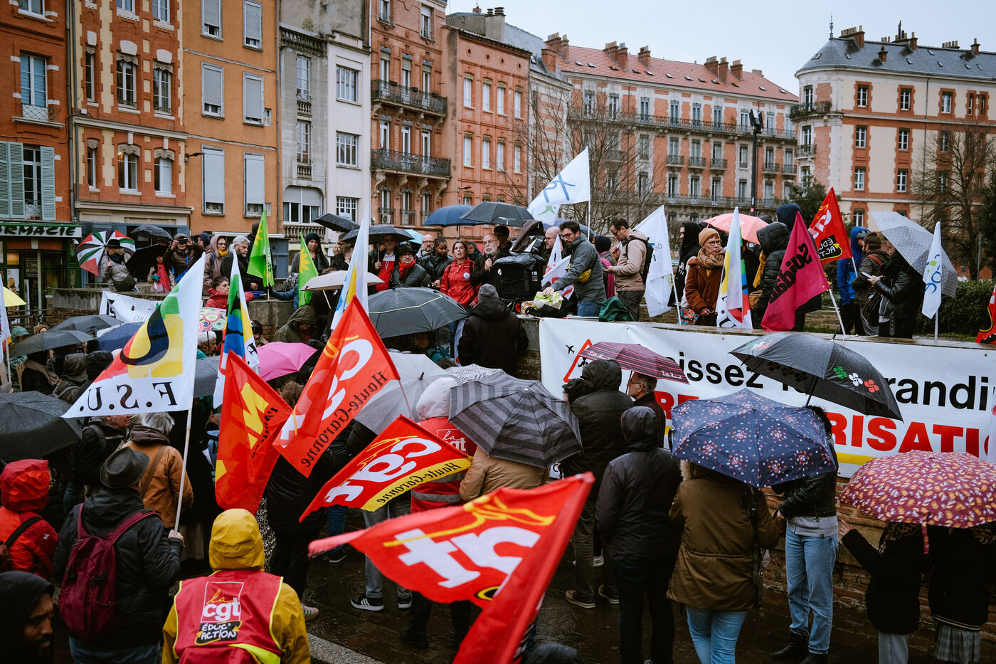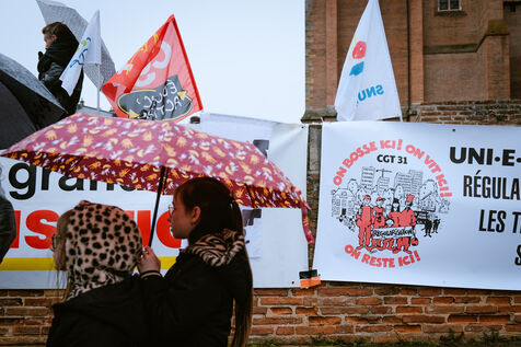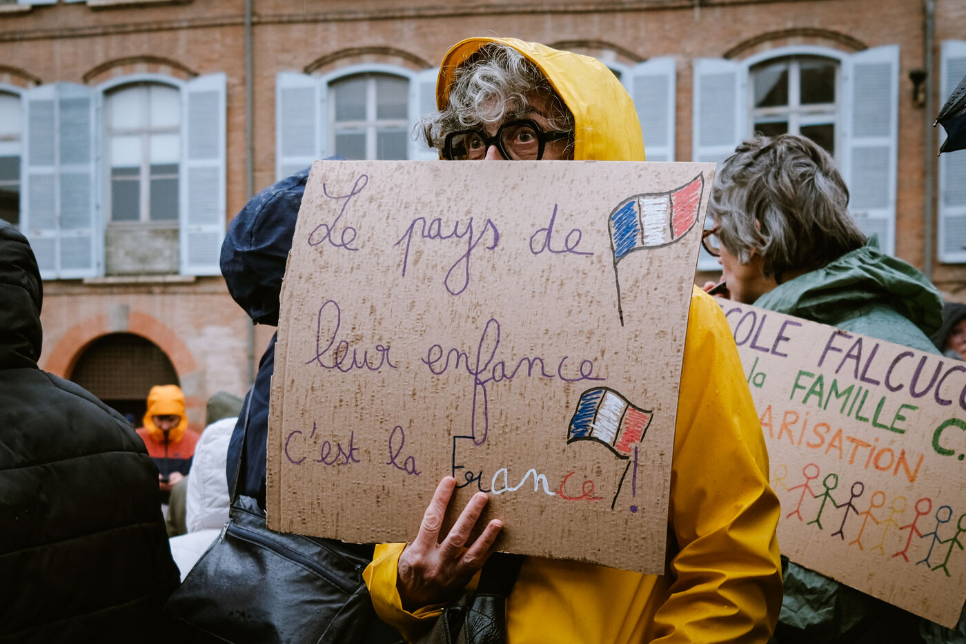 Rally called by CIMADE, the Human Rights League (LDH) and unions (FCPE, FSU, Solidaires, CGT) for the defense of undocumented children who are exiled or refugees but educated in the city's schools as well as the regularization of their families in Toulouse, southwest France on February 12, 2025.