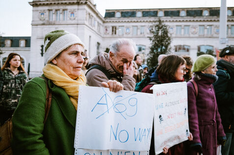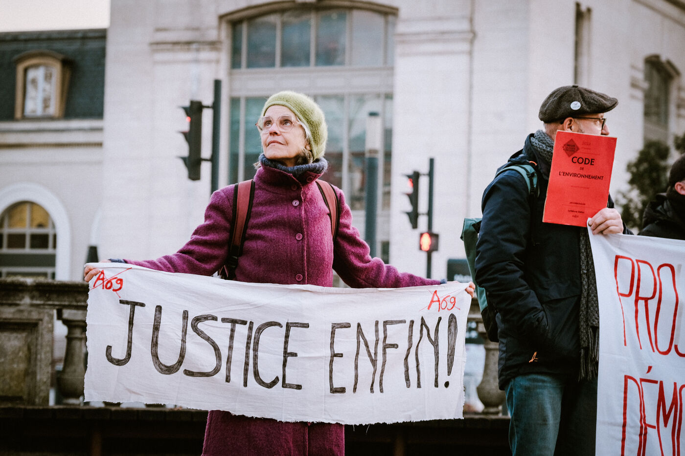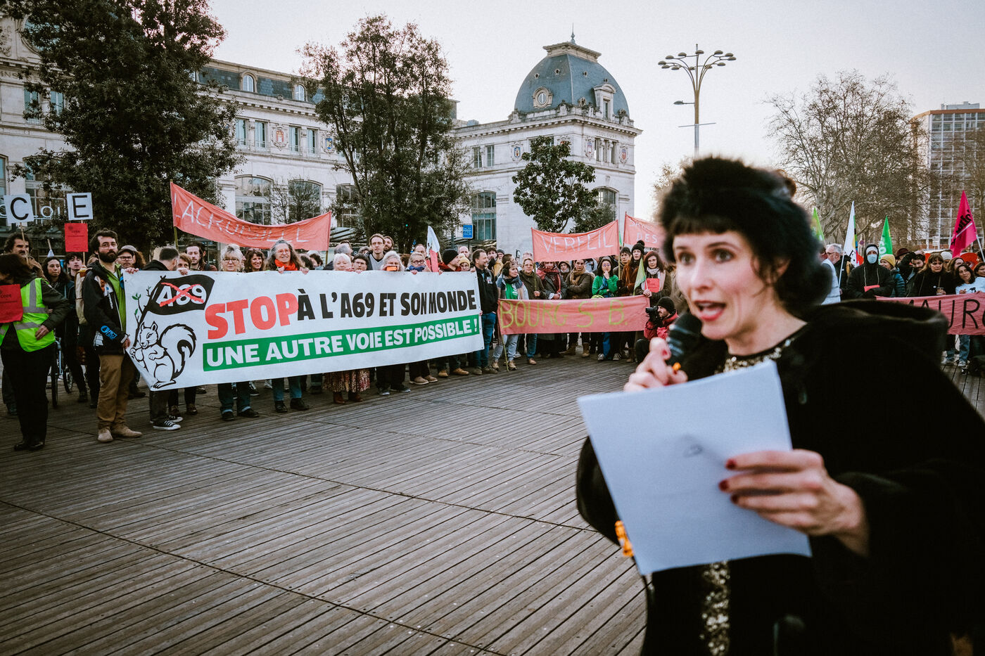 Rally against the construction site of the A69 Toulouse-Castres motorway at the time when the administrative court must examine the legality of environmental authorisations in Toulouse, south-west France on February 18, 2025.