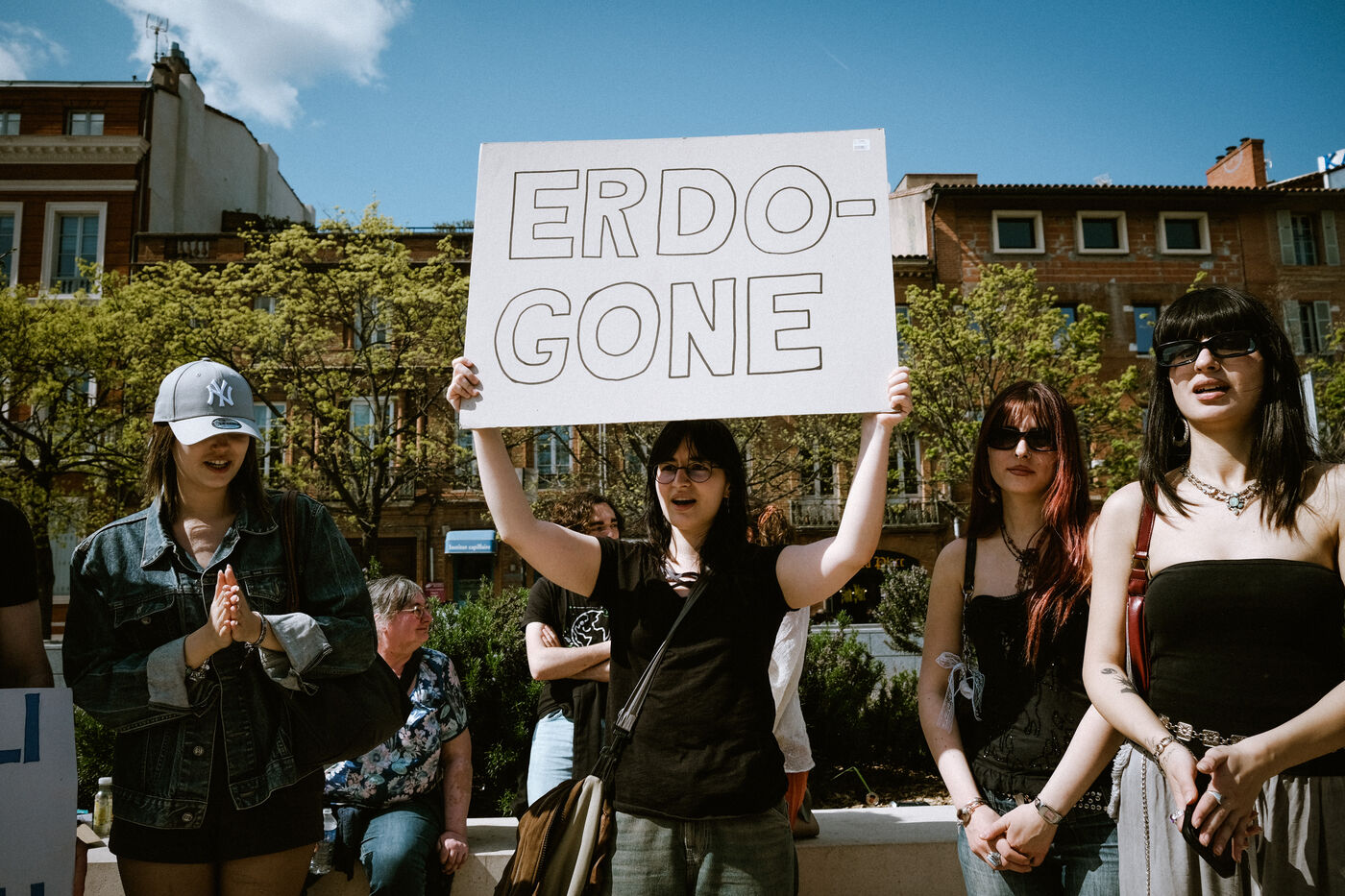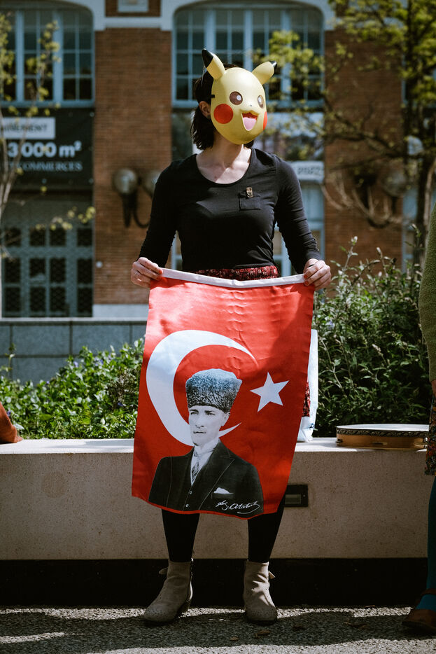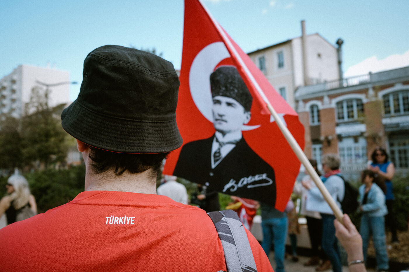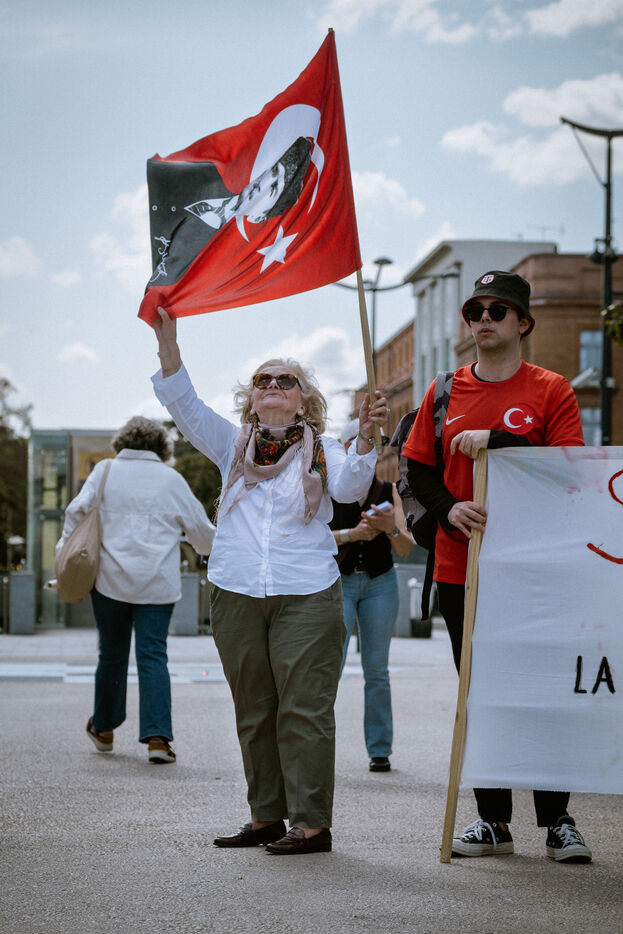 Rassemblement de la communauté turque contre l'arrestation en Turquie du maire d'Istanbul et en solidarité aux manifestations massives dans le pays à Toulouse, sud-ouest de la France le 6 avril 2025.