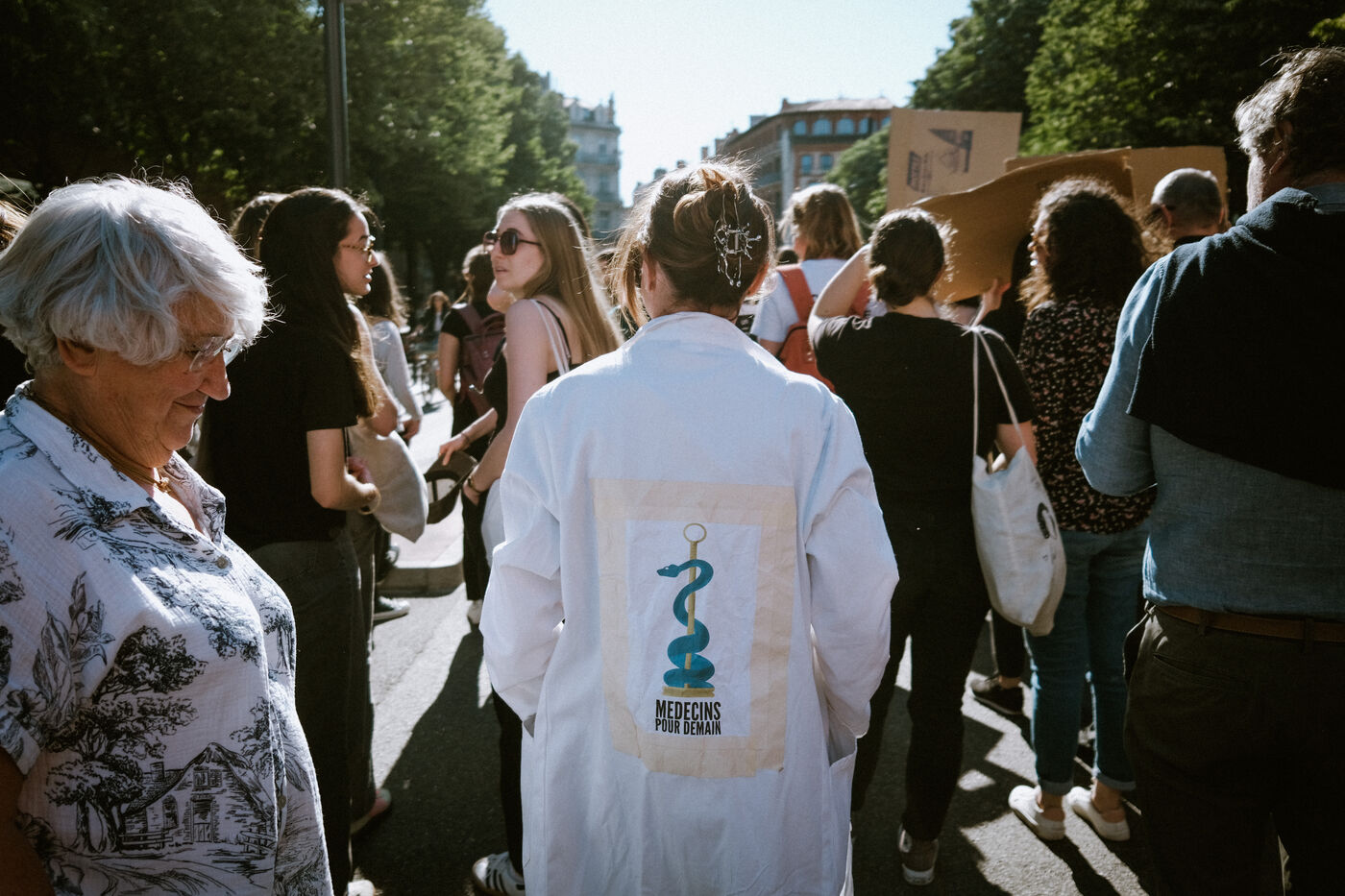 Manifestation d'étudiants et internes en médecine contre la propositionn de loi Garot sur les déserts médicaux à Toulouse, sud-ouest de la France le 29 avril 2025.