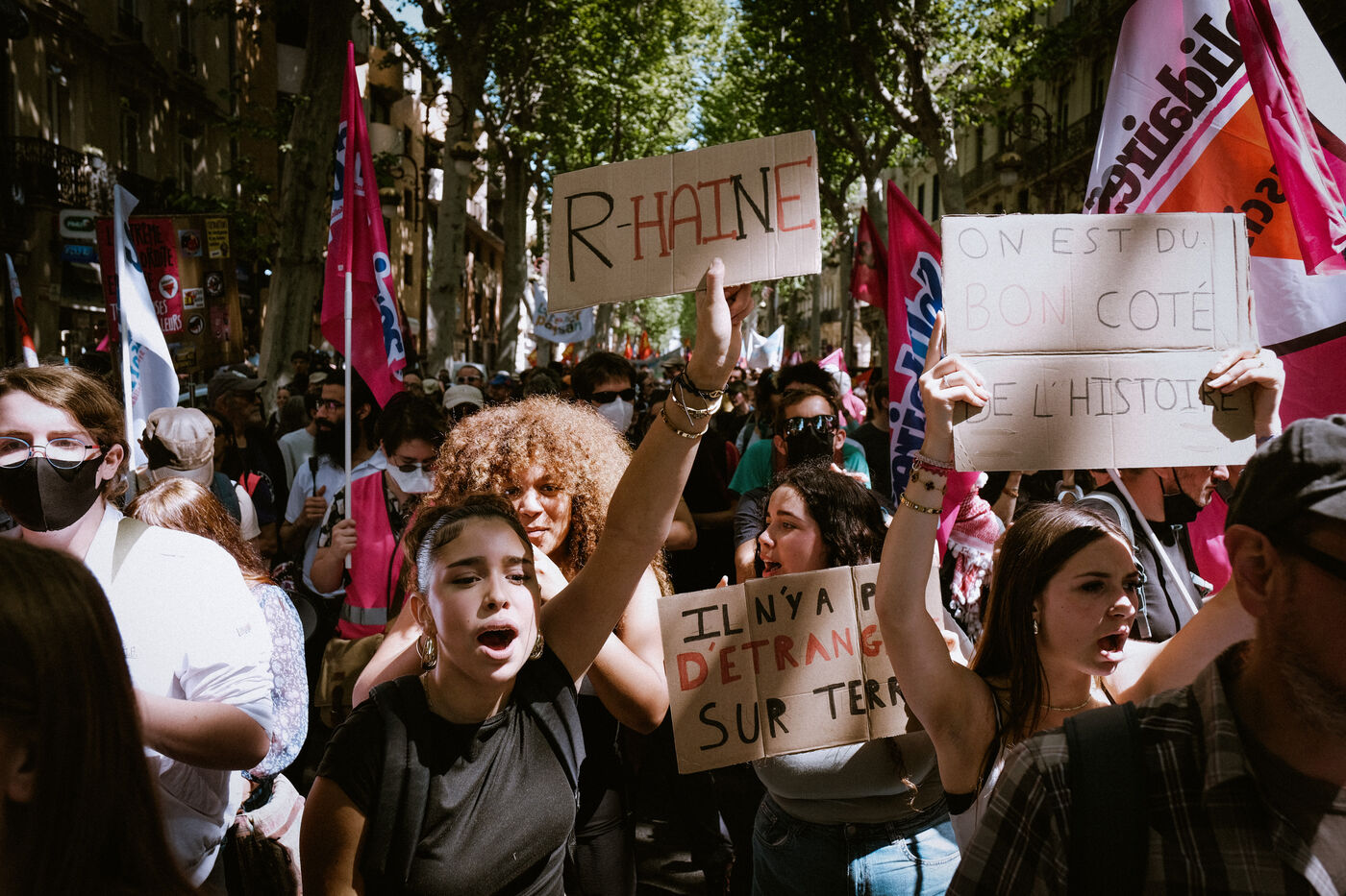 Trade union demonstration for the International Day of Struggle for Workers' Rights on May Day and against the far right and fascism in Narbonne, southern France on May 1, 2025.