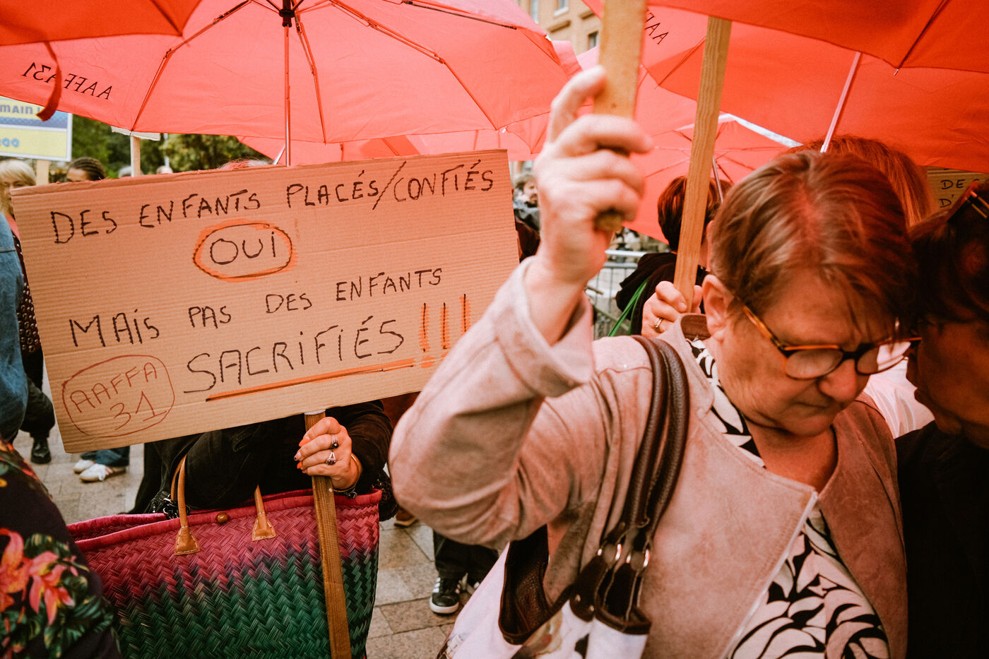 National rally for the defense of child welfare by the collective Les 400,000 which brings together 70 associations, institutions, federations and civil society actors involved in child protection in Toulouse, southwest France on May 15, 2025.
