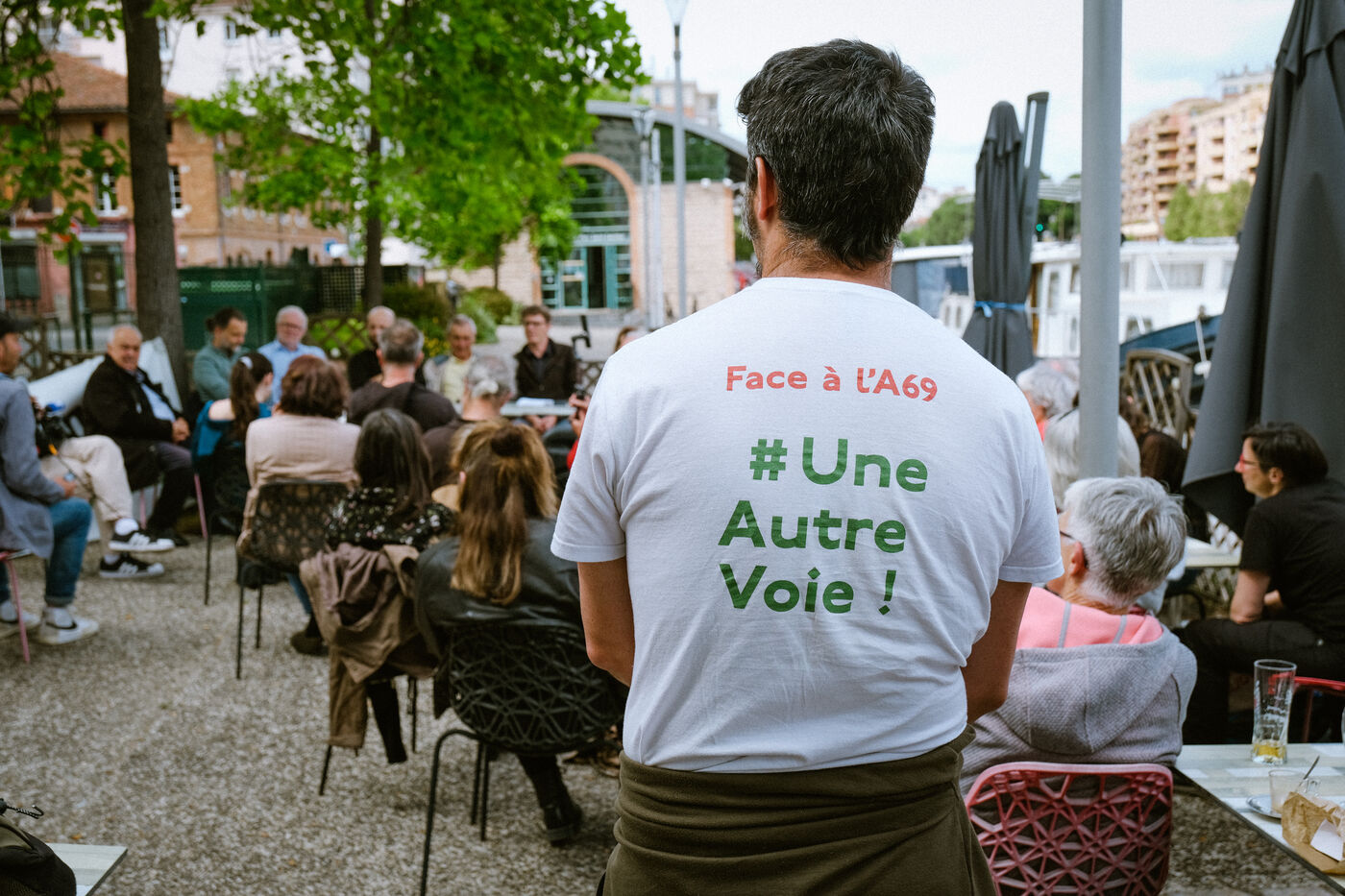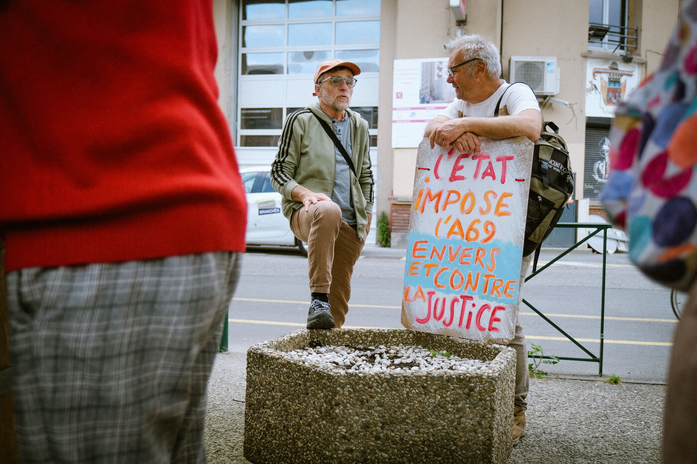 Press conference held by opponents of the resumption of work on the A69 (Toulouse-Castres motorway) which followed the review by the administrative court's appeal court for the restart of work in Toulouse, southwest France, on May 15, 2025. On February 27, this same court had canceled the environmental authorization granted by the local prefectures and ordered the immediate cessation of work.