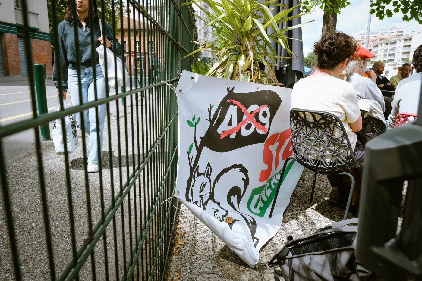Conférence de presse tenue par des opposants à la reprise du chantier de l'A69 (autoroute Toulouse-Castres) qui faisait suite à l'examen par la cour d'appel du tribunal administratif pour le redémarrage des travaux à Toulouse, sud-ouest de la France le 15 mai 2025. Le 27 février dernier, ce même tribunal avait annulé l'autorisation environnementale accordée par les préfectures locales et ordonné l'arrêt immédiat du chantier.