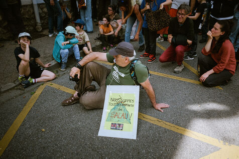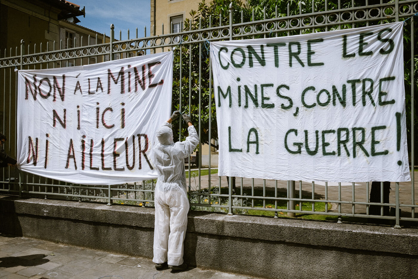 Manifestation de différentes associations locales contre la relance de projets miniers en Ariège (et plus particulièrement la réouverture de l'ancienne mine de tungstène de Salau) à Foix, sud-ouest de la France le 24 mai 2025.
