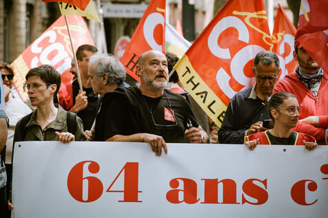 Demonstration against pension reform more than two years after its promulgation by 49.3 and a few days before the end of the conclave of social partners in Toulouse, southwest of France on June 5, 2025.