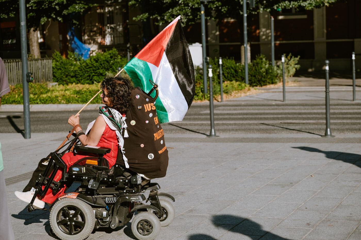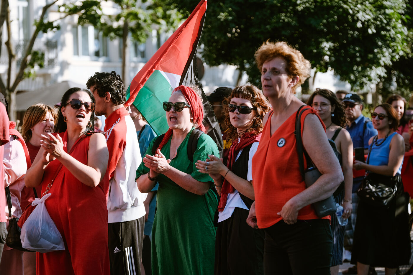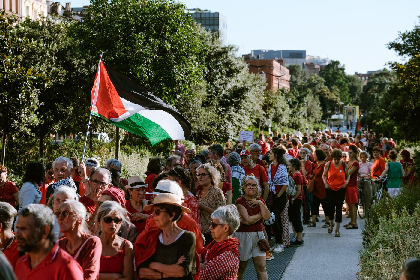 Marche nationale organisée par l'ONG Amnesty International contre le franchissement des lignes rouges par Israël à Gaza en rapport avec la répression et le blocus organisés par le gouvernement hébreu entrainant une famine en Palestine à Toulouse, sud-ouest de la France le 8 juillet 2025.