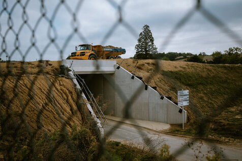 Le ministre des transports Philippe Tabarot a visité le chantier controversé de l'autoroute A69 devant relier Toulouse à Castres et ayant été interrompu par décision judiciaire en février 2025 puis réautorisé en mai à Cuq-Toulza, sud-ouest de la France le 5 septembre 2025.