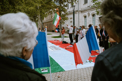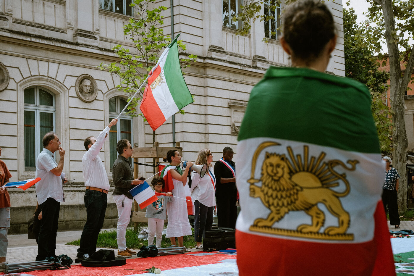 Rassemblement en commémoration des trois ans de la mort de l'iranienne d'origine kurde Mahsa Jina Amini après avoir été arrêtée et torturée par la police des mœurs pour port de vêtements inappropriés ce qui avait créé le mouvement Femme Vie Liberté à Toulouse, sud-ouest de la France le 14 septembre 2025.