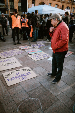 Demonstration and Die-in organized by the association NousToutes 31 in tribute to all women victims of femicide in Toulouse, southwestern France, on November 16, 2025.