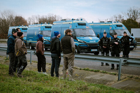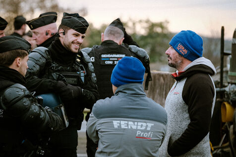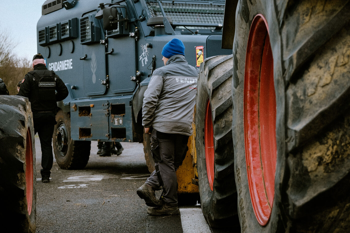 Démantèlement volontaire du blocage des agriculteurs de l'A64 suite à l'arrivée 450 agents des forces de l'ordre après 32 jours d'occupation pour protester contre la gestion du gouvernement de la Dermatose Nodulaire Contagieuse (DNC), les accords du Mercosur et la détresse agricole récurrente à Carbonne, sud-ouest de la France, le 13 janvier 2026.
