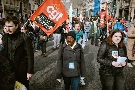 Demonstration and strike by AESH staff (Accompanying Staff for Students with Disabilities) who have been fighting for several months for recognition of their status and salary increases in Toulouse, southwestern France, on February 12, 2026.