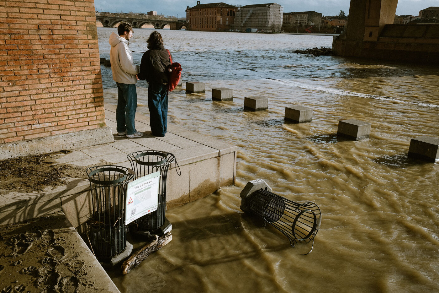 View of the Garonne River receding after Storm Nils, which had a major impact on the department the previous night, in Toulouse, southwestern France, on February 12, 2026.