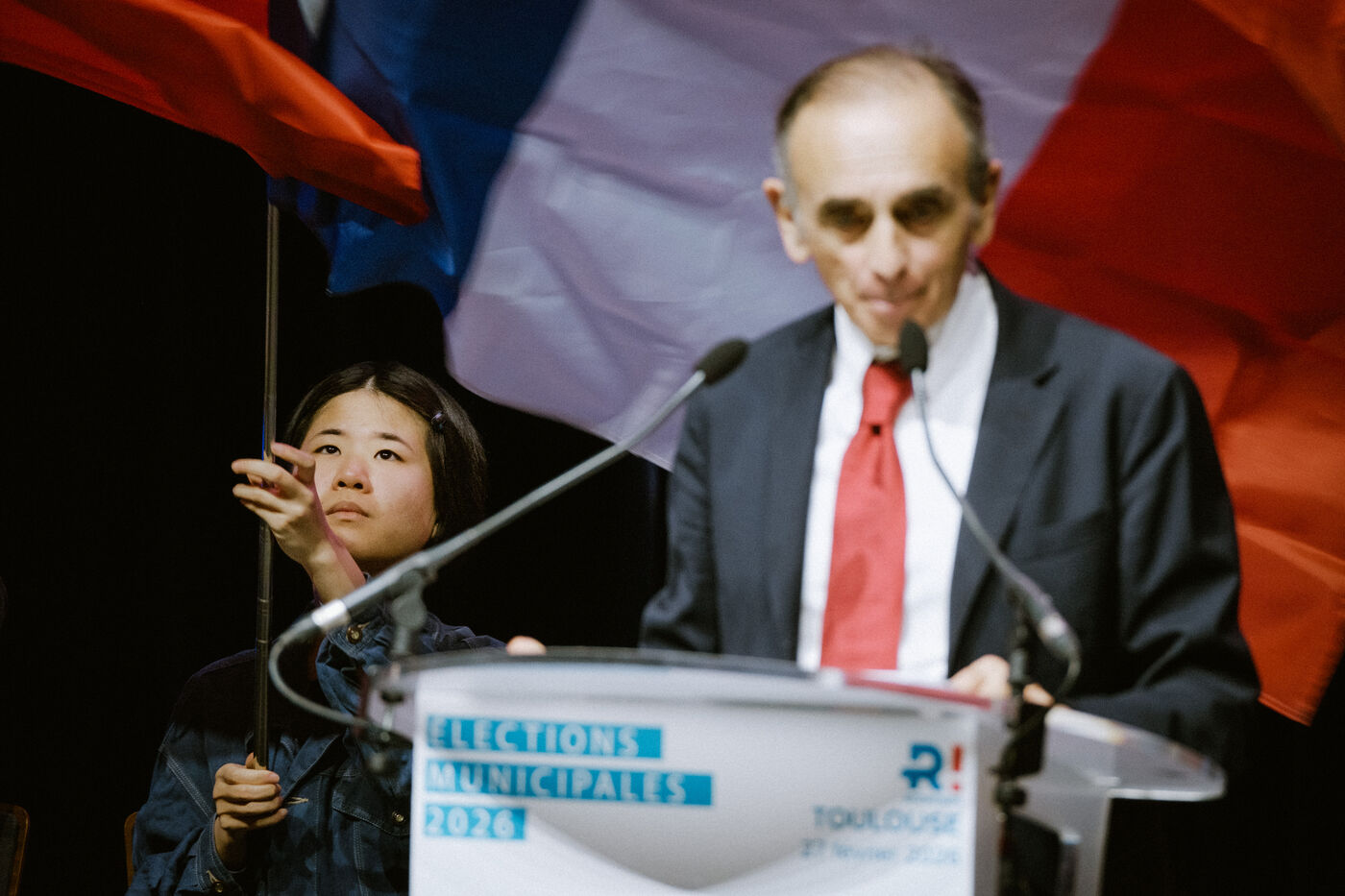 Campaign rally for the Reconquête political party ahead of the upcoming municipal elections in Toulouse, southwestern France, a stronghold known for its hostility toward the far right, on February 27, 2026.