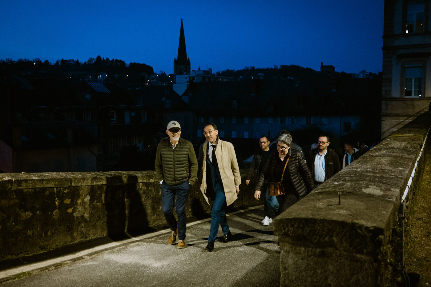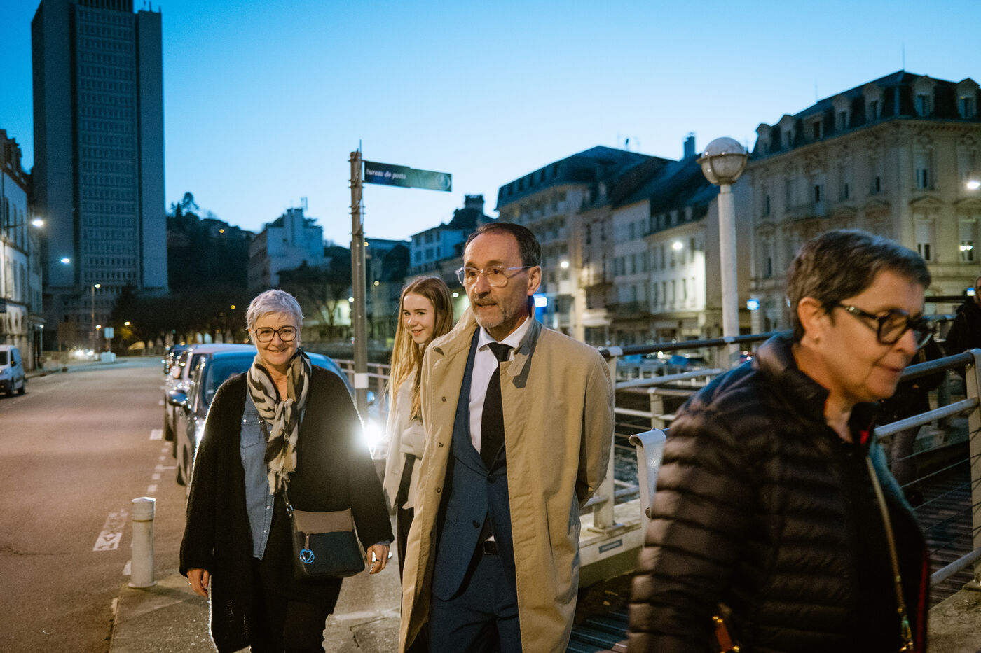 Face à deux listes de gauche dont une du maire sortant divers gauche et une du Rassemblement National RN, le candidat divers droite Laurent Melin (C) arrive en tête du scrutin pour le second tour dans le fief historique de gauche qu'est Tulle, centre de la France, le 15 mars 2026.