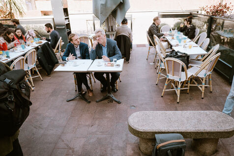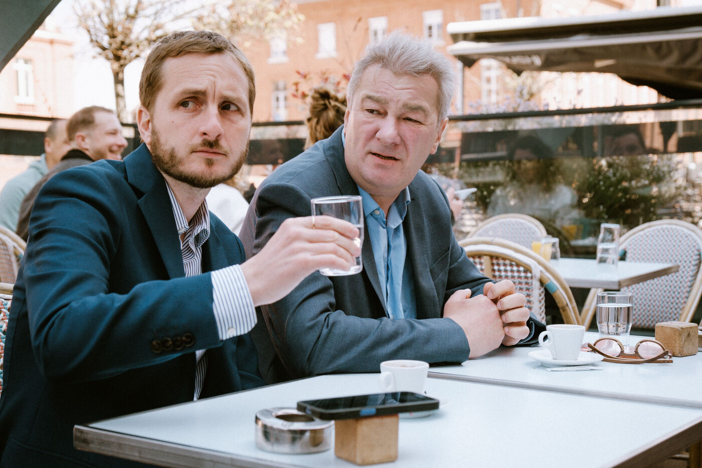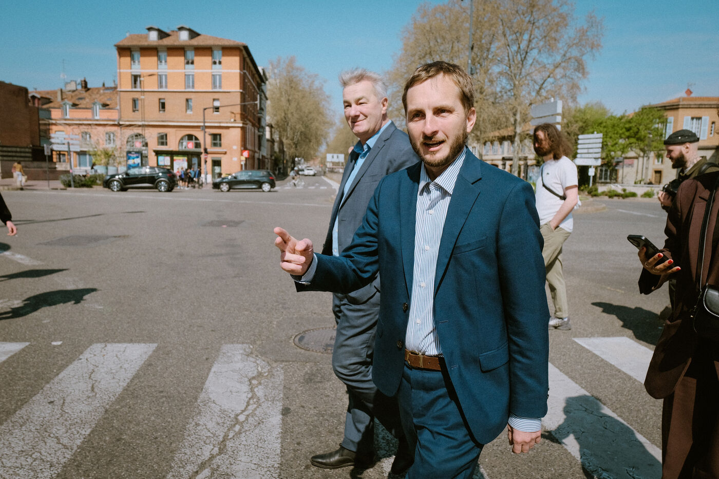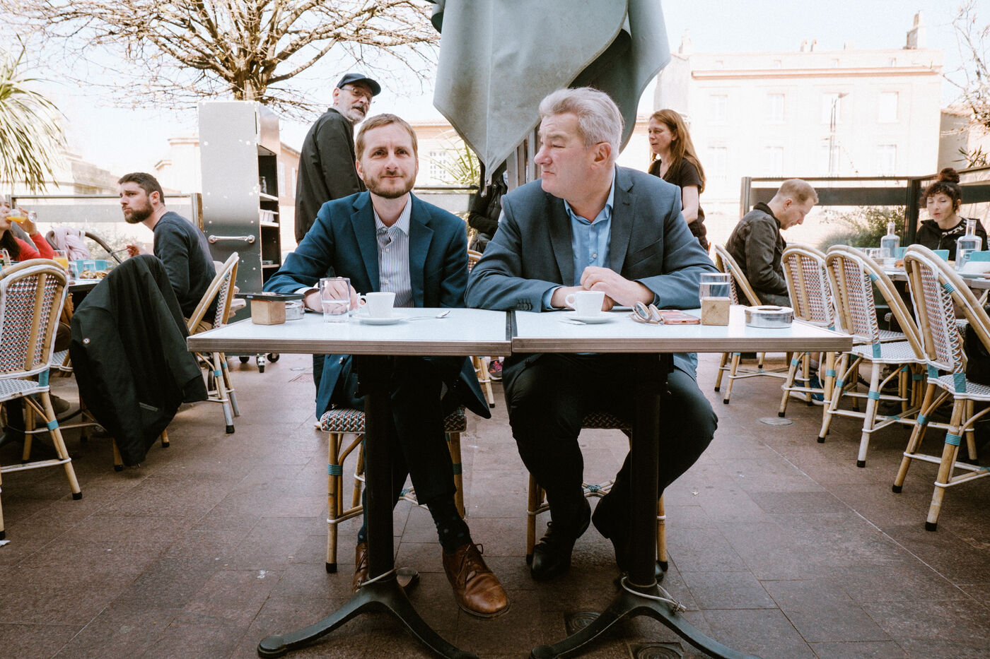 A stroll through the city streets and for a coffee with the candidates from the joint left-wing ticket—François Piquemal (L - La France Insoumise, LFI) and François Briançon (R - Socialist Party, PS)—on the day of the second-round vote, in which they are running against the incumbent right-wing mayor in the upcoming municipal elections in Toulouse, in southwestern France, on March 22, 2026.