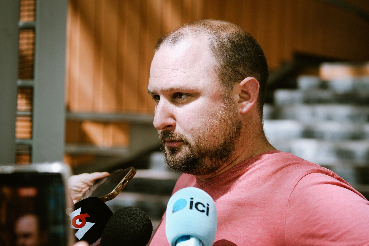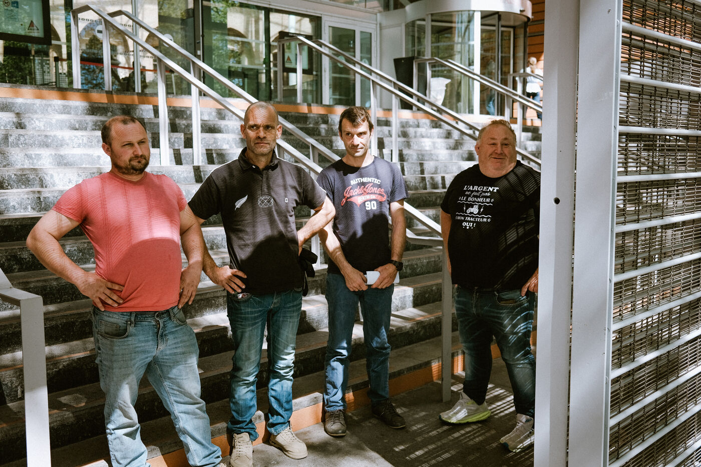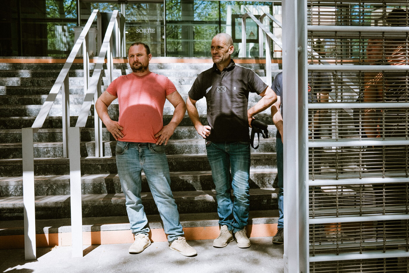 Comparution de quatre agriculteurs du syndicat Coordination Rurale 31 pour dégradation de 73 transformateurs ENEDIS en janvier dernier pour laquelle ils encourent 7 ans de prison à Toulouse, sud-ouest de la France, le 8 avril 2026.