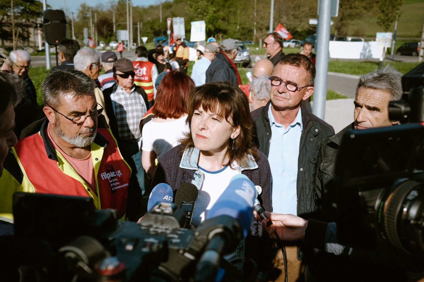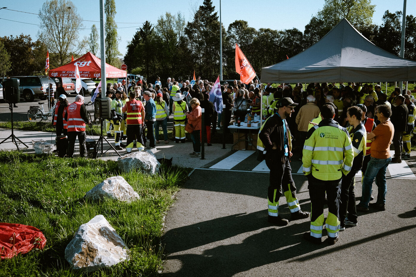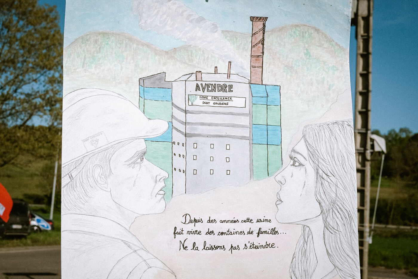 Occupation of the entrance to the Fibre Excellence pulp mill by employees in Saint-Gaudens, in southwestern France, on April 9, 2026.
