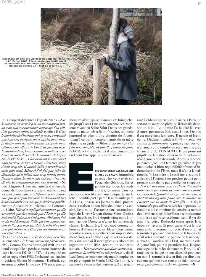 Reportage réalisés pour M, le magazine du journal Le Monde du 20/02/2016 avec la journaliste Louise Couvelaire