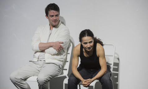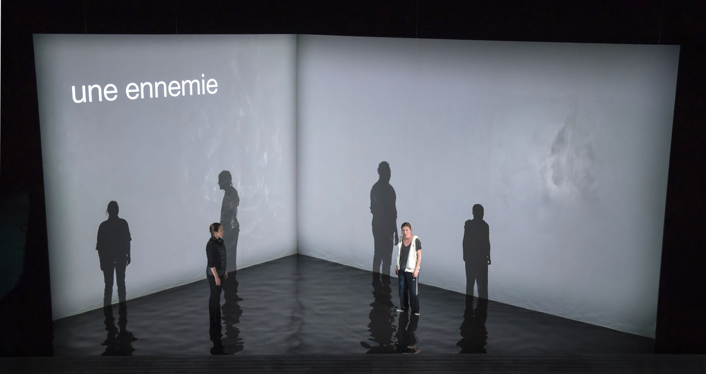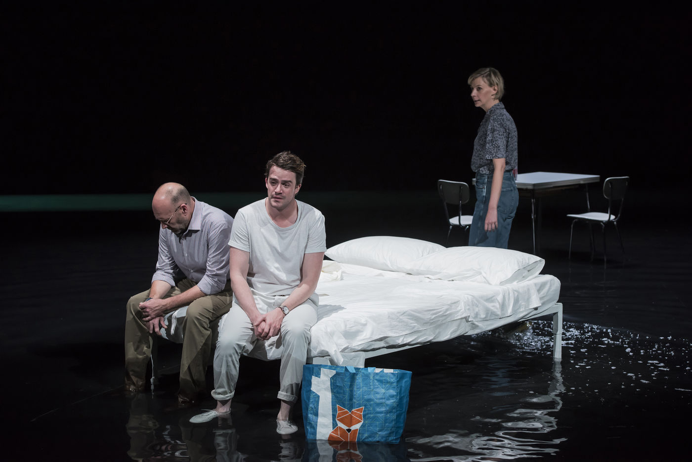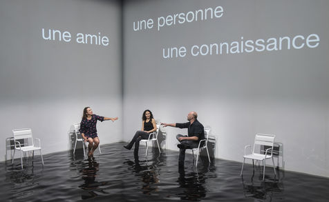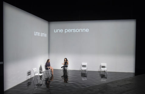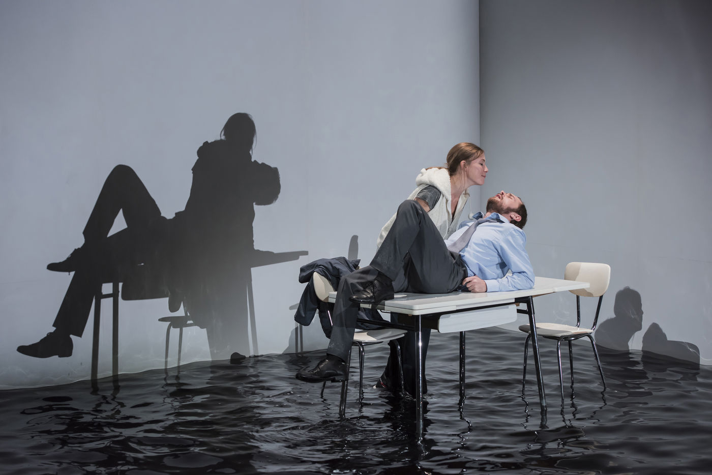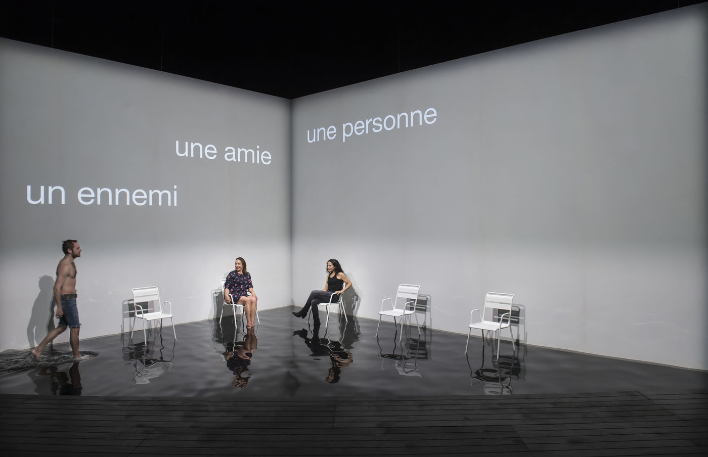 NOUS POUR UN MOMENT written by Arne Lygre, french text by Stephane Braunschweig and Astrid Schenka, directed by Stephane Braunschweig with Anne Cantineau, Virginie Colemyn, Cecile Coustillac, Glenn Marausse, Pierric Plathier, Chloe Rejon and Jean-Philippe Vidal at the Odeon Theatre de l Europe in Paris on November 9, 2019.