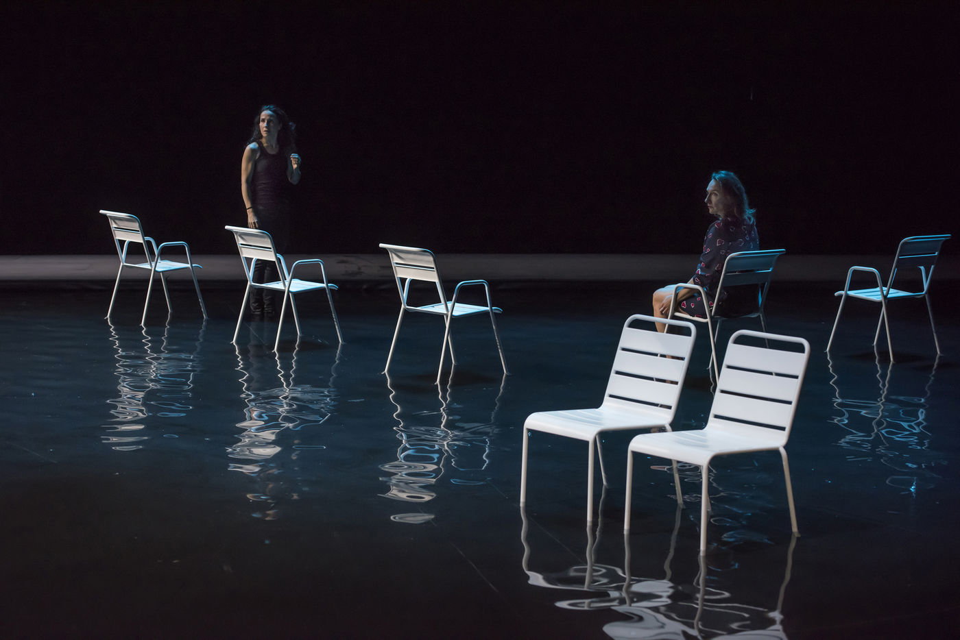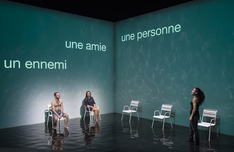 NOUS POUR UN MOMENT texte de Arne Lygre, traduction francaise de Stephane Braunschweig et Astrid Schenka, mise en scene de Stephane Braunschweig avec Anne Cantineau, Virginie Colemyn, Cecile Coustillac, Glenn Marausse, Pierric Plathier, Chloe Rejon et Jean-Philippe Vidal a l Odeon Theatre de l Europe a Paris le 6 Novembre 2019.