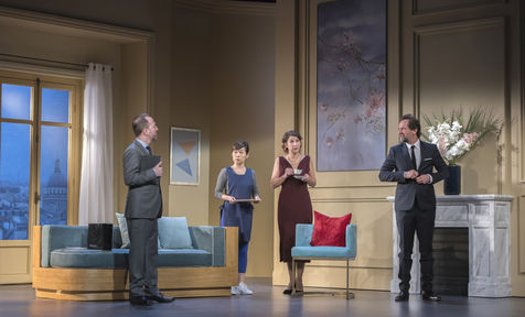UN AMOUR DE JEUNESSE texte et mise en scène de Ivan Calberac avec Stephane De Groodt, Isabelle Gelinas, Sebastien Pierre, Olivia Cote et Nelly Clara a Paris au Theatre de la Renaissance le 22 janvier 2020.