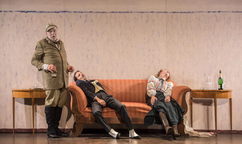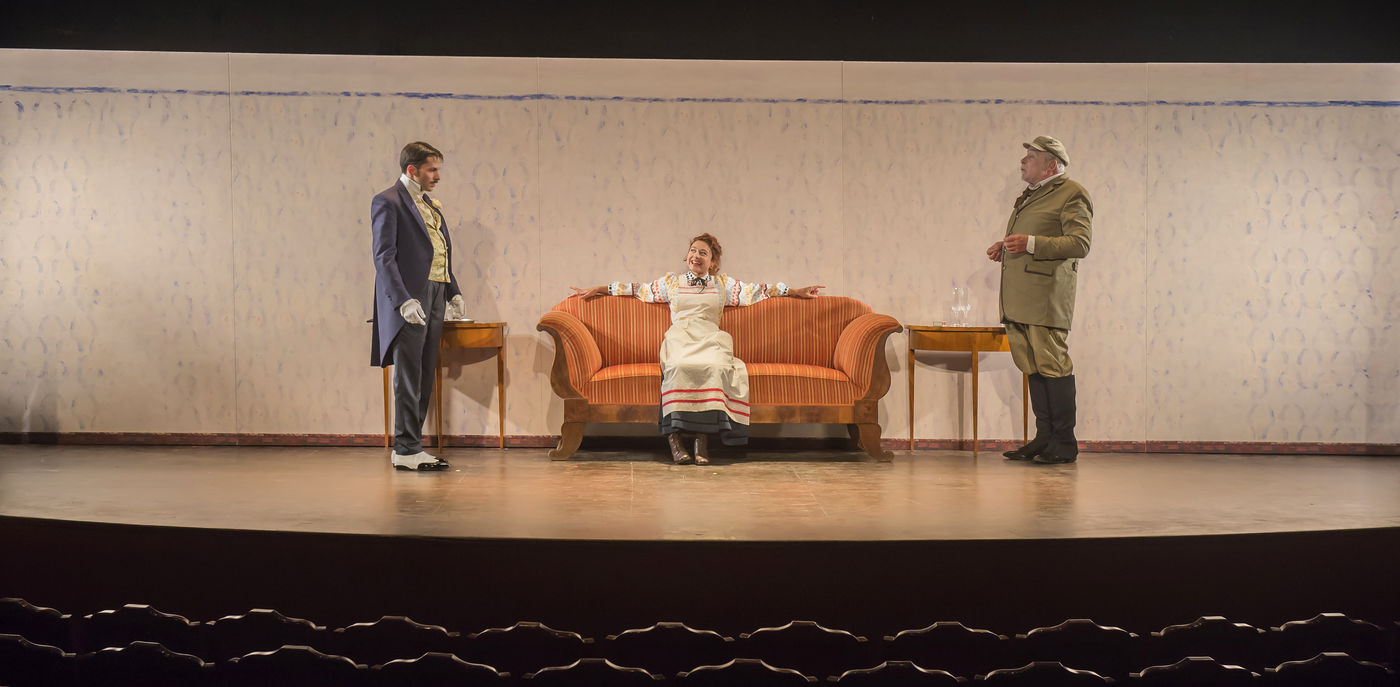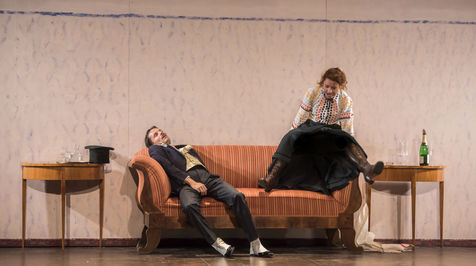 CRISE DE NERFS 3 farces d Anton Tchekhov LE CHANT DU CYGNE LES MEFAITS DU TABAC UNE DEMANDE EN MARIAGE mise en scene de Peter Stein avec Jacques Weber, Manon Combes et Loic Mobihan a Paris au Theatre de l Atelier le 18 september 2020.