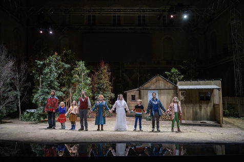 KINGDOM librement inspire de Braguino de Clement Cogitore texte et mise en scene Anne-Cecile Vandalem avec Arnaud Botman, Laurent Caron, Philippe Grand Henry, Epona Guillaume, Zoe Kovac et Federico D Ambrosio, Leonor Malamatenios (équipe de realisation) Cour du Lycee Saint Joseph. Photographie de Pascal Gely / Hans Lucas