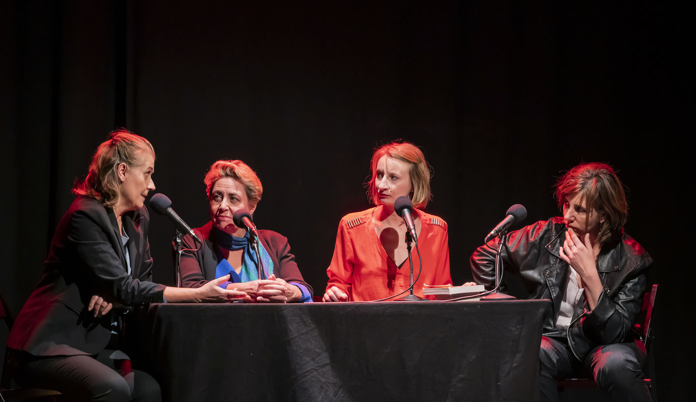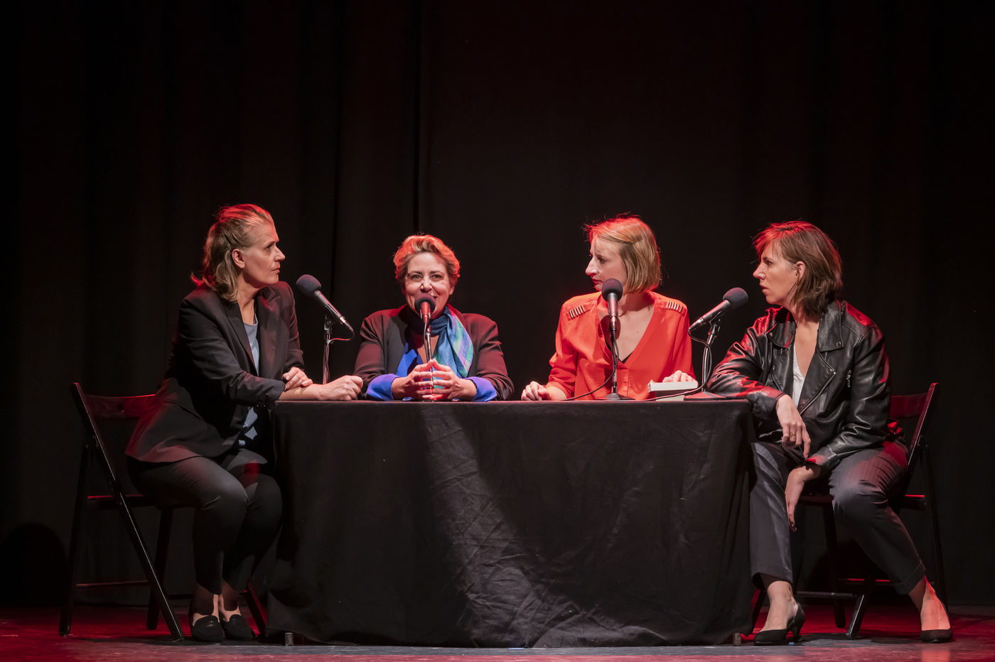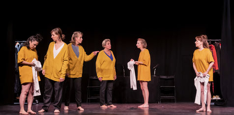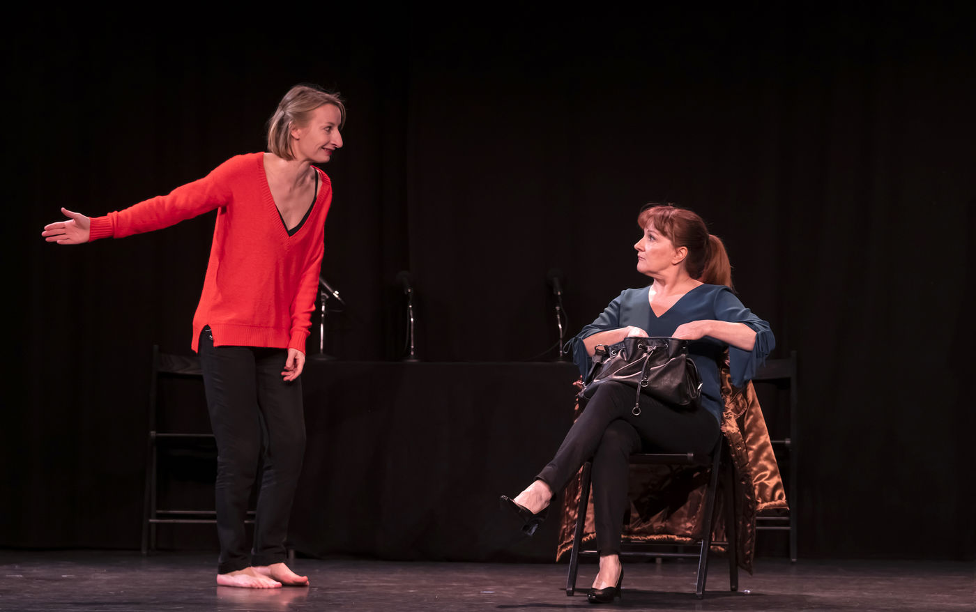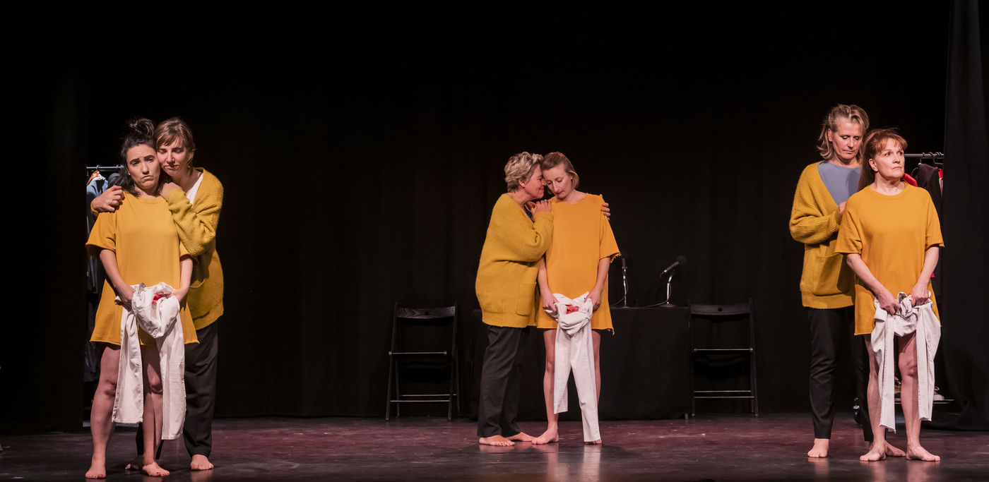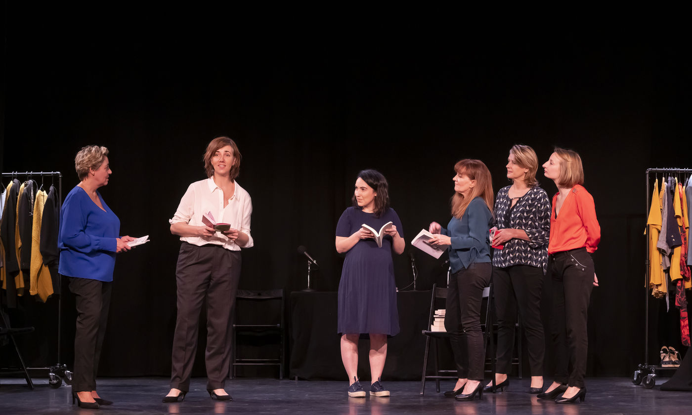 LIZA ET MOI HISTOIRES DE MERES ET DE FILLES texte de Sandrine Delsaux mise en scene de Sophie Thebault avec Sandrine Delsaux, Marthe Drouin, Marine Vellet, Cecile Martin, Agnes Pichois et Catherine Piffaretti au Theatre de la Reine Blanche. Photographie de Pascal Gely / Hans Lucas