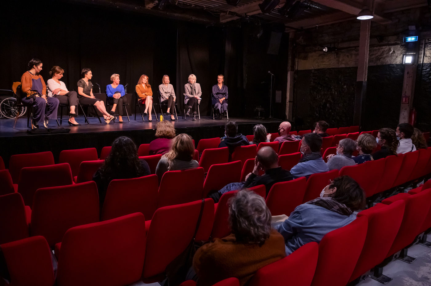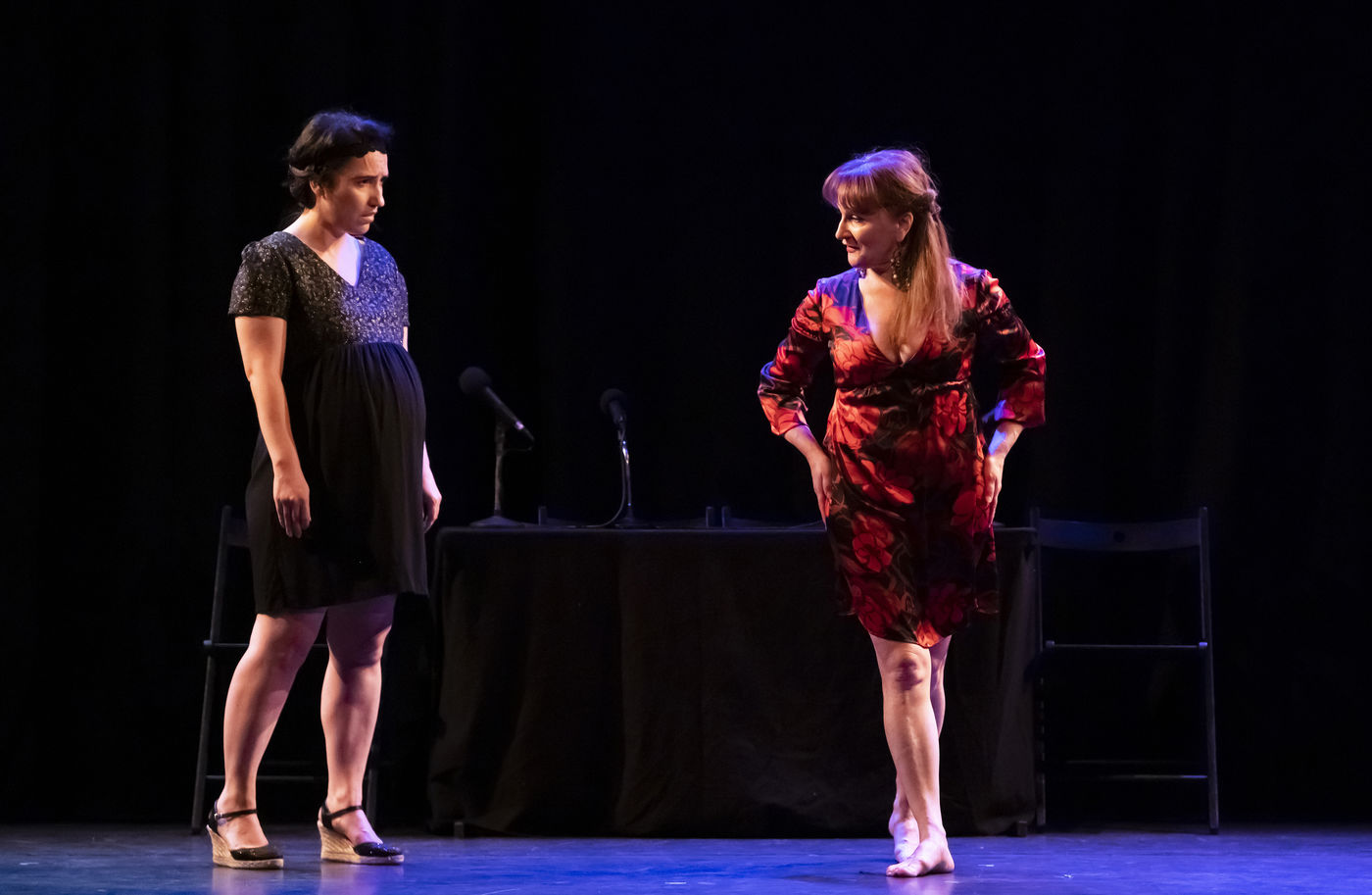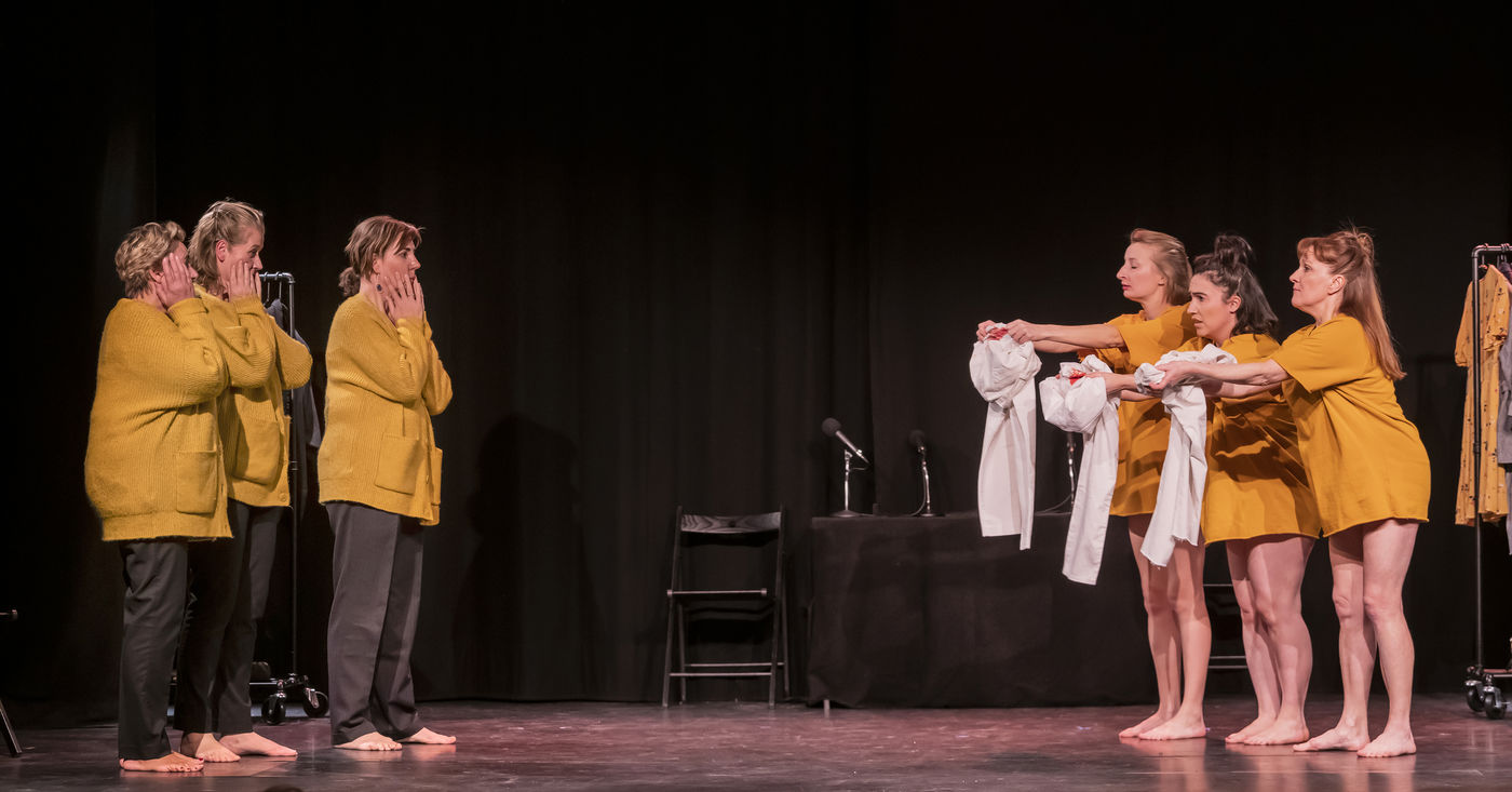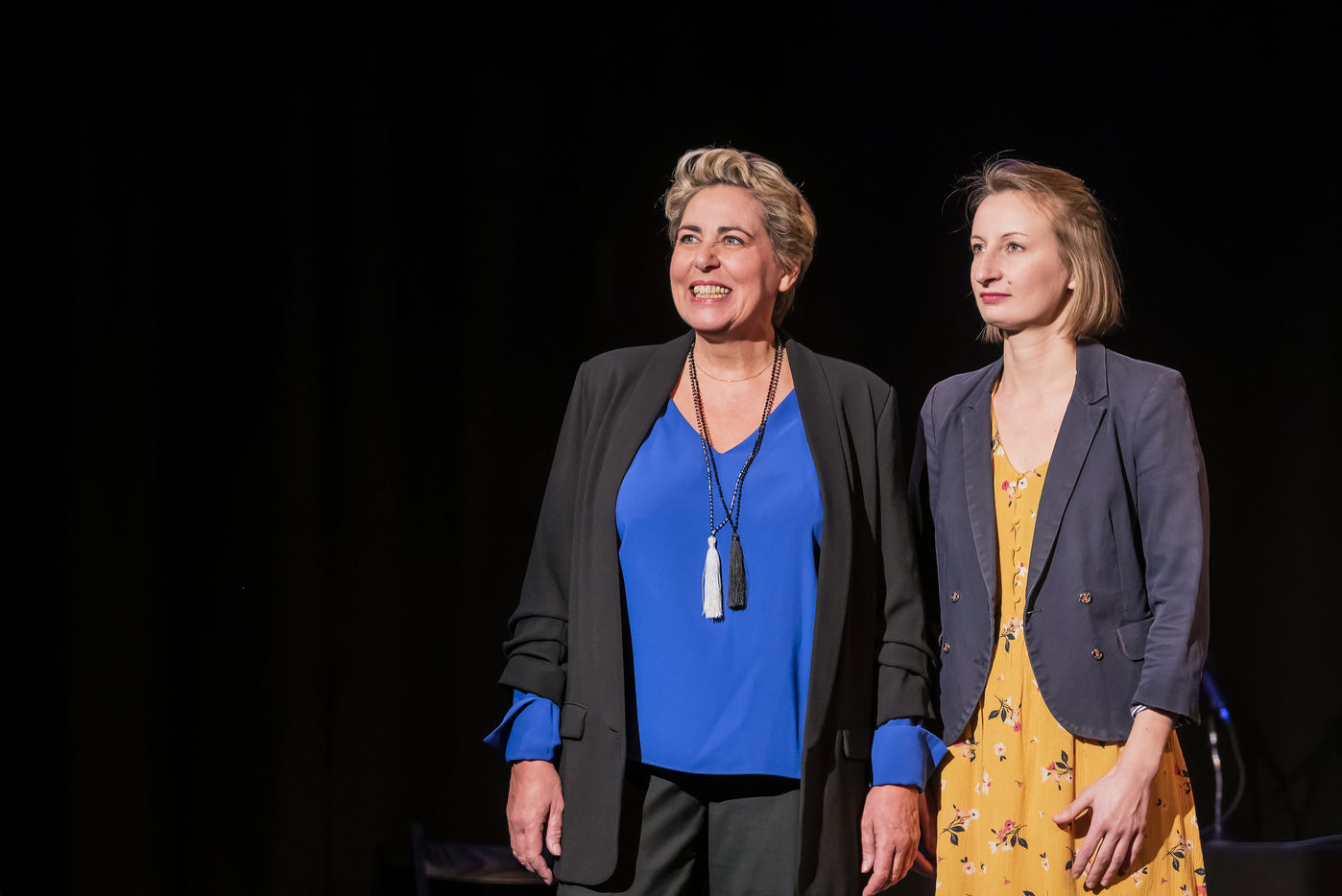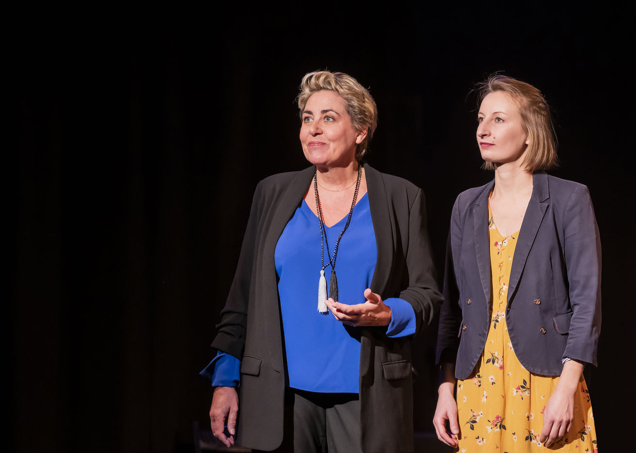 LIZA ET MOI HISTOIRES DE MERES ET DE FILLES texte de Sandrine Delsaux mise en scene de Sophie Thebault avec Sandrine Delsaux, Marthe Drouin, Marine Vellet, Cecile Martin, Agnes Pichois et Catherine Piffaretti au Theatre de la Reine Blanche. Photographie de Pascal Gely / Hans Lucas