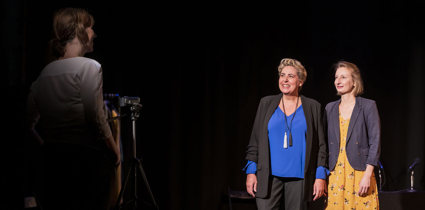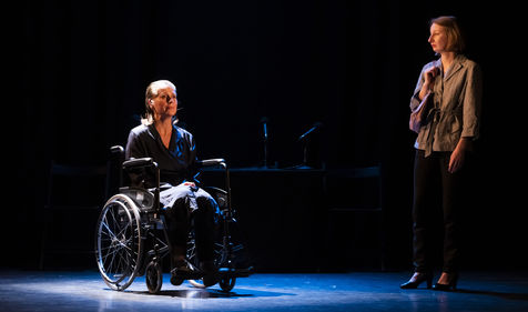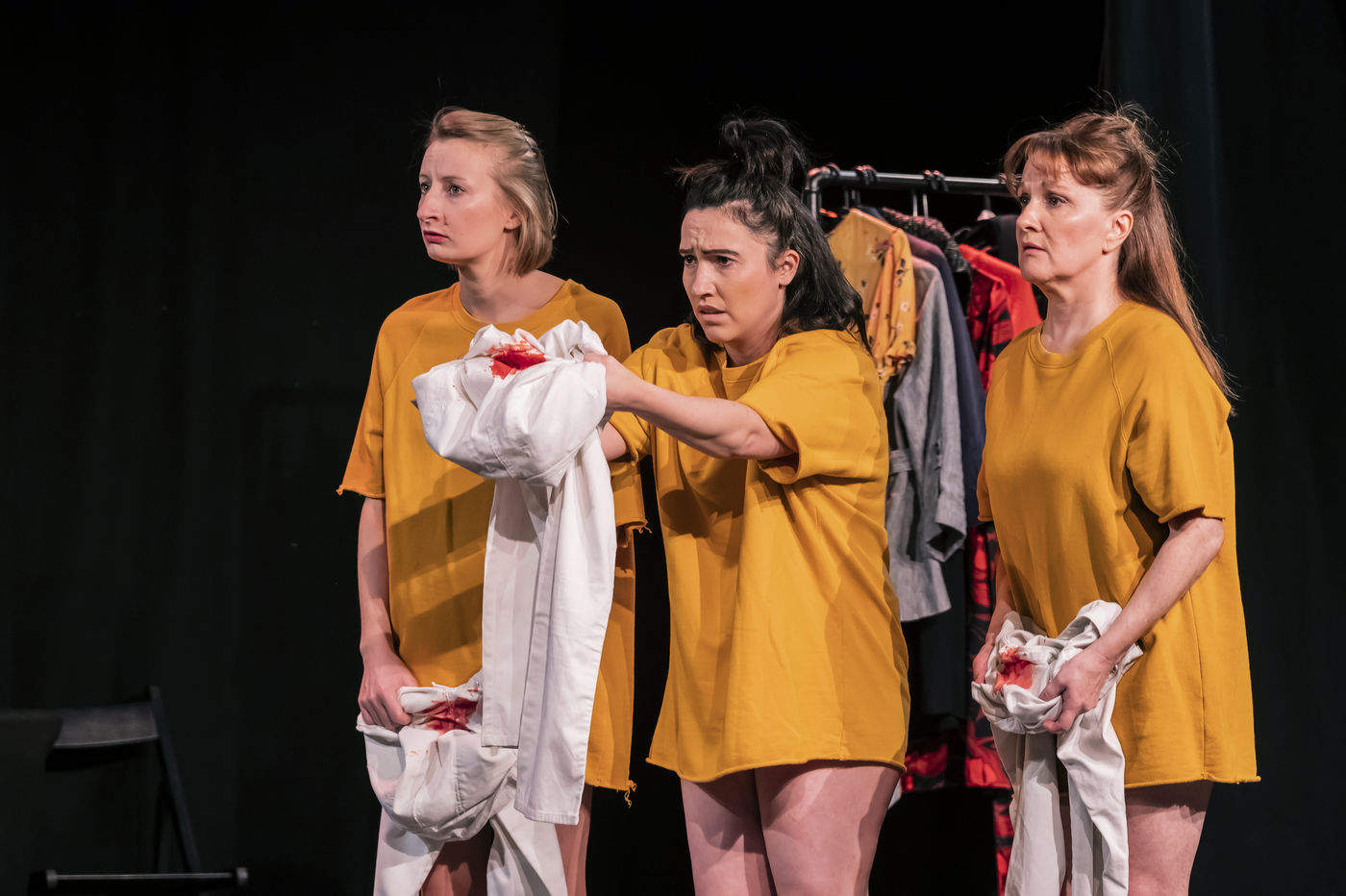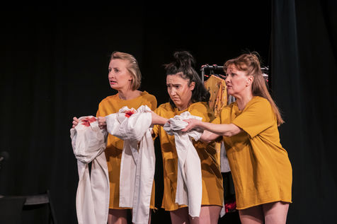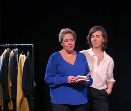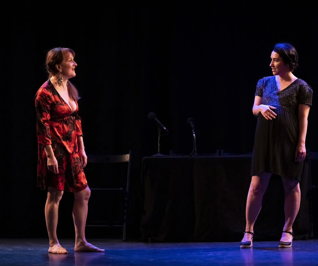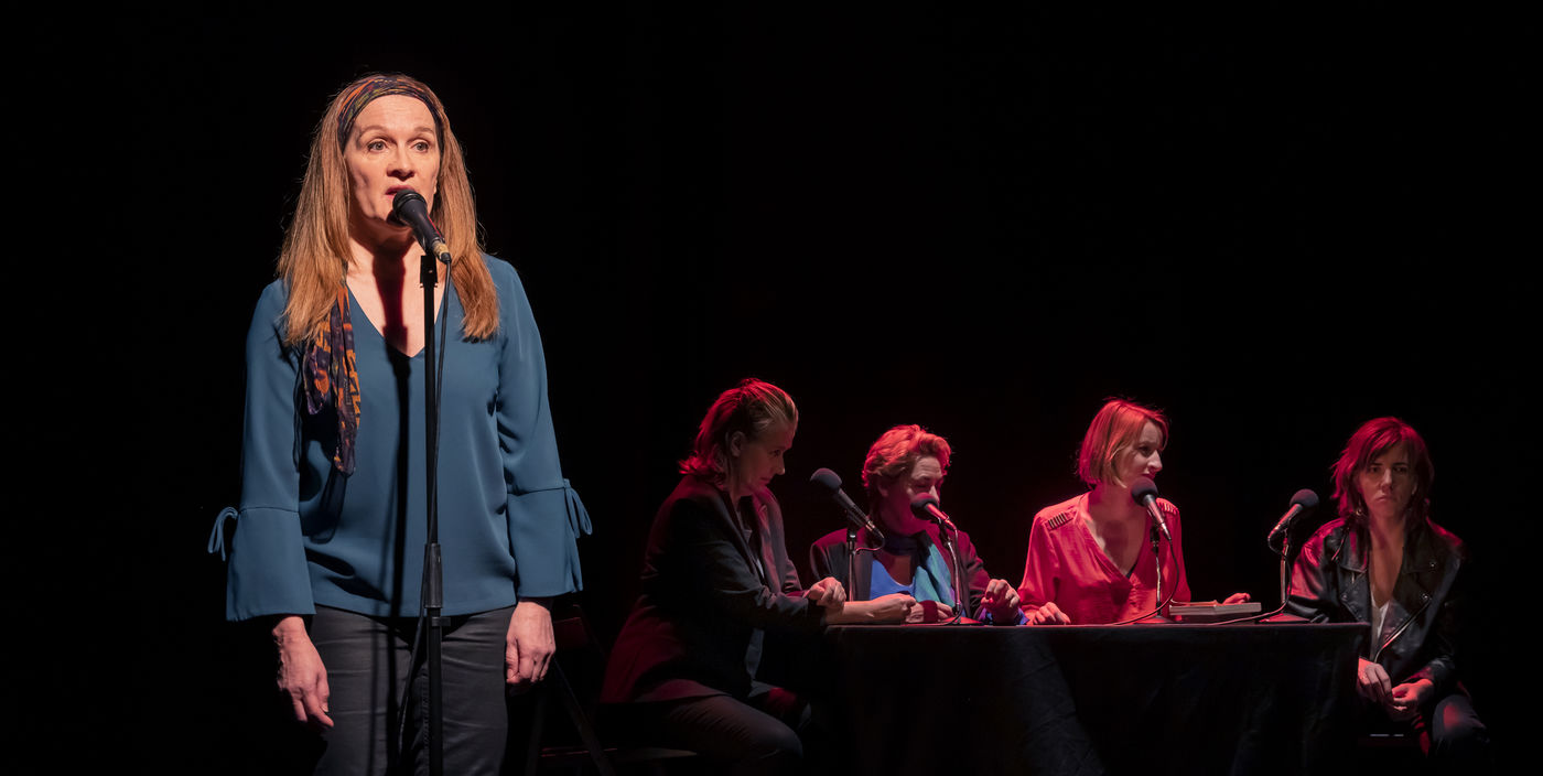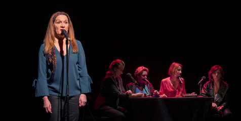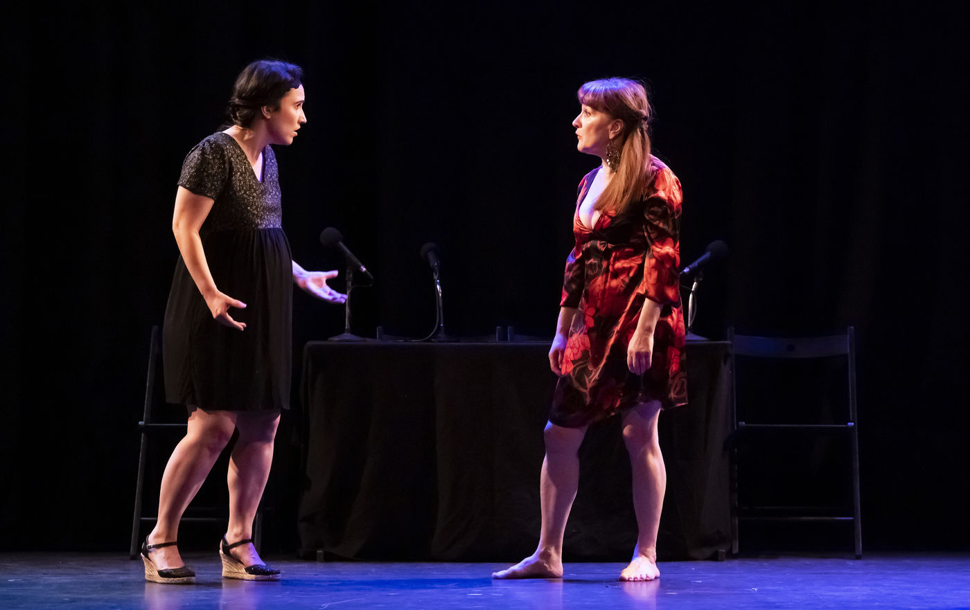 LIZA ET MOI HISTOIRES DE MERES ET DE FILLES texte de Sandrine Delsaux mise en scene de Sophie Thebault avec Sandrine Delsaux, Marthe Drouin, Marine Vellet, Cecile Martin, Agnes Pichois et Catherine Piffaretti au Theatre de la Reine Blanche. Photographie de Pascal Gely / Hans Lucas